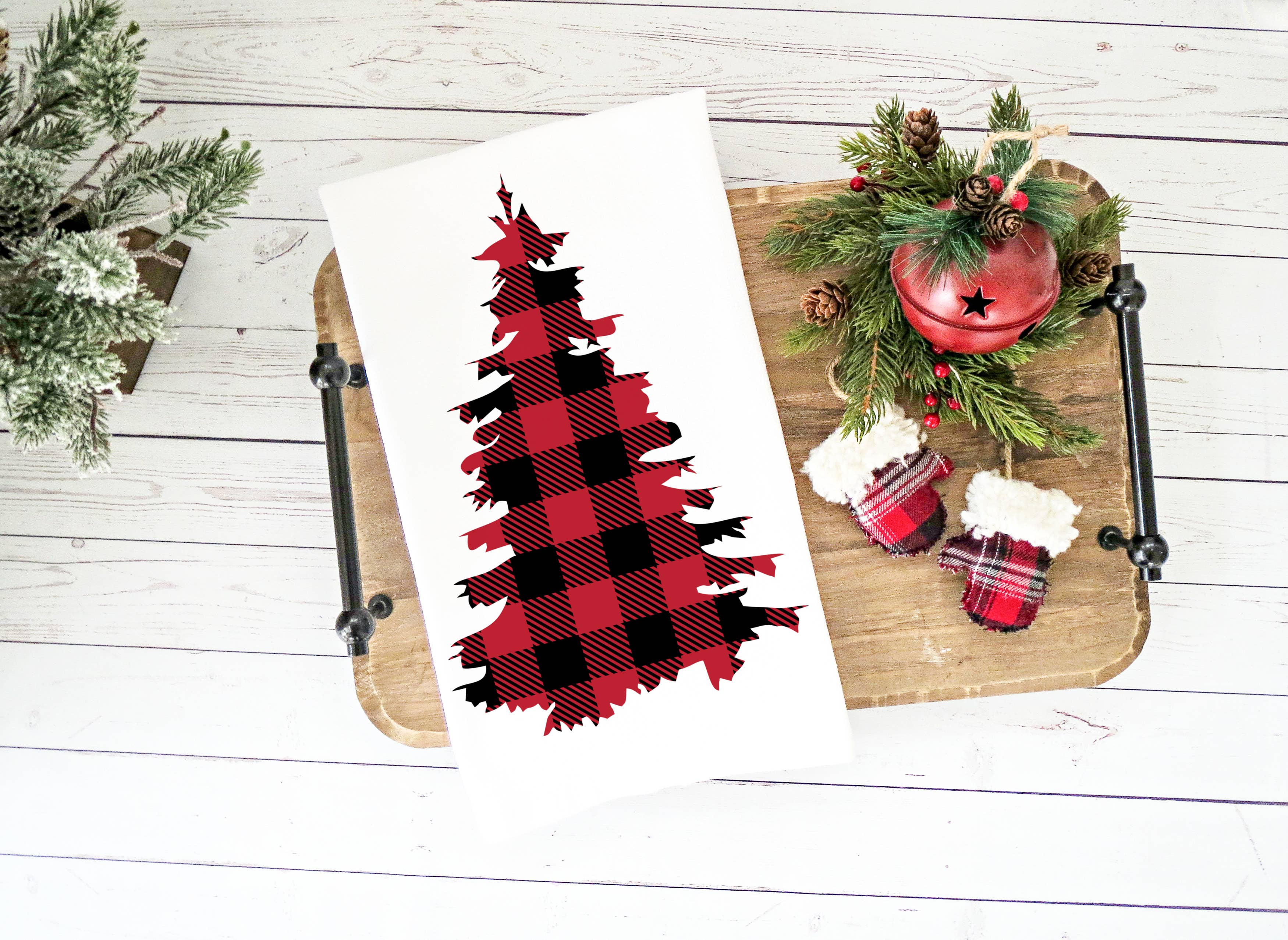 Red Buffalo Check Tis the Season Towel is a soft fabric towel with a farmhouse Christmas design. Towel is made of red and black, buffalo check fabric, and features the image of a pair of white deer silhouettes alongside the phrase, "'Tis The Season." Measures 27.5" high by 18" wide.