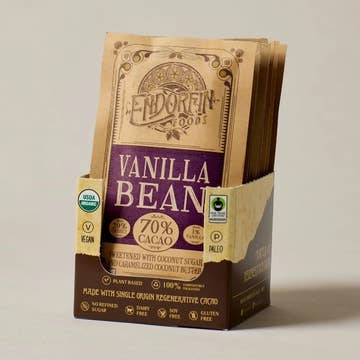 Made in United States Diet: Dairy-free, Gluten-free, Paleo, Plant-based, Soy-free, Sugar-free, and Vegan Production: Fair trade Ingredients: Organic cocoa beans and cocoa butter (92%), organic unrefined cane sugar (panela), Mexican vanilla from @jangalamx Weight: 56.7 g (2 oz)