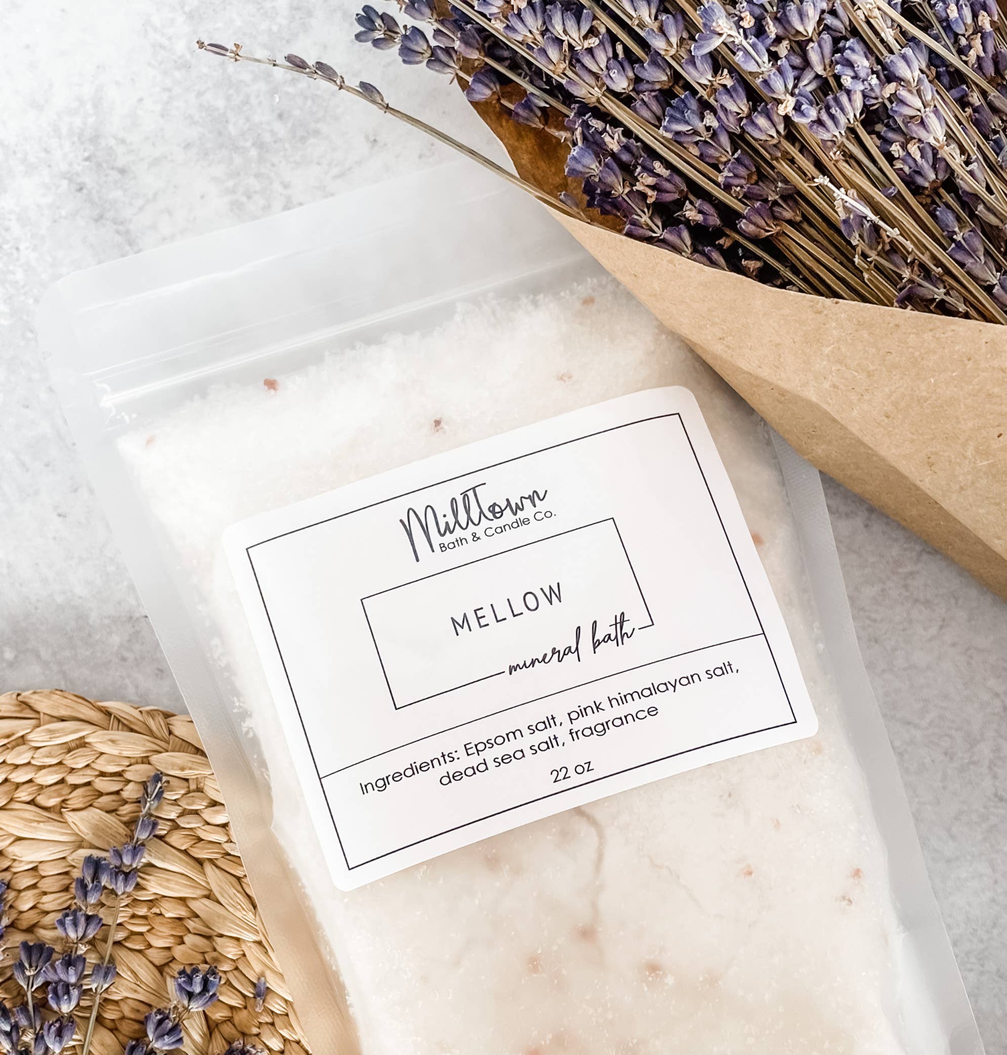 Unwind into stillness with the Lavender Calm Bath Salts, a soothing blend of mineral-rich salts and delicate botanicals. The soft floral scent of lavender meets warm, earthy notes, creating a balanced aroma that feels grounding and comforting. As the salts dissolve, hints of sweet blooms drift through the steam, turning your bath into a calm, restorative ritual. Size 8 oz / 227 g How to Use Add 1/2 cup to warm running water. Use a cotton muslin bag if desired. Soak for 20 minutes. Hydrate and relax afterwards. Ingredients Premium Epsom salt, Himalayan pink salt, sea salt, tapioca starch, essential oil blend (lavender, patchouli, ylang ylang, palmarosa and vetiver), dried lavender flowers, dried chamomile flowers