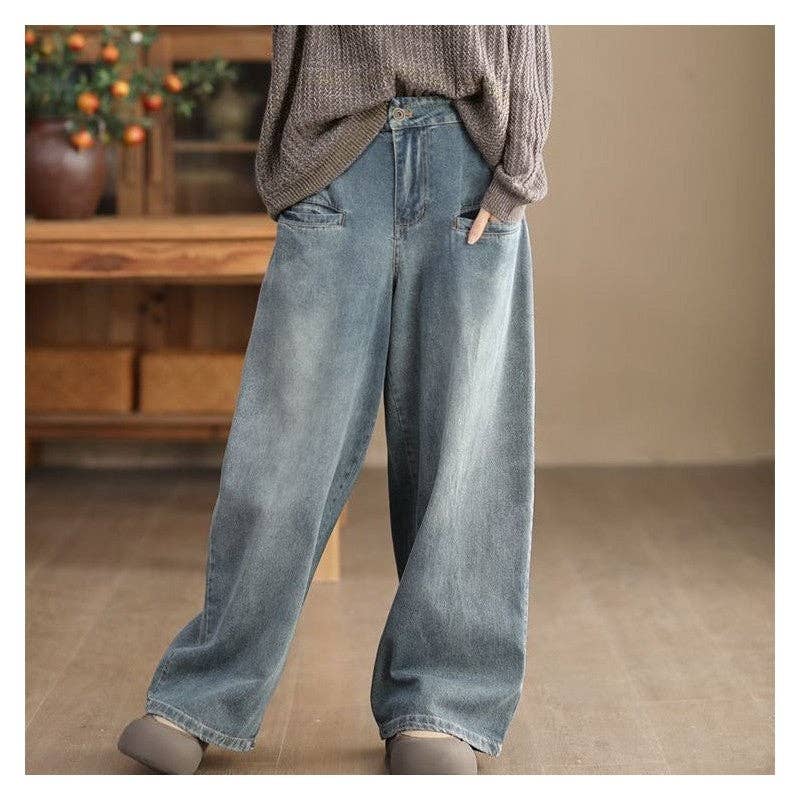 Occasion:Going out,Casual,Artistic Retro,Girlish Sweetness,Light Maturity,Leisure Fashion Seasons:Spring,Autumn Type:Jean Pants Bottoms Material:Cotton Style:Intellectual,All-match,Look-thin,Look-younger Size XS (inch) : Waist= 23.40 ; Hips= 31.20 ; Leg Opening= 20.09 ; Length= 40.56 ; Size S (inch) : Waist= 24.96 ; Hips= 32.76 ; Leg Opening= 20.67 ; Length= 40.95 ; Size M (inch) : Waist= 26.52 ; Hips= 34.32 ; Leg Opening= 21.26 ; Length= 41.34 ; Size L (inch) : Waist= 28.08 ; Hips= 35.88 ; Leg Opening= 21.84 ; Length= 41.73 ; Size XL (inch) : Waist= 29.64 ; Hips= 37.44 ; Leg Opening= 22.43 ; Length= 42.12 ; Elevate your style with these high-waisted wide-leg trousers.