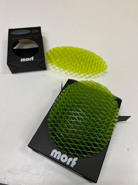 CARTON OF 12 UNITS. Wholesale Price: $10/each The Original Morf Worm. Find sensory salvation, as you manipulate and contort Morf's ellipsoid body, quietly without disturbing others. This is the bigger version of our advanced fidget toy. It stretches, it collapses, it accordions. It bends, it flexes, it extends. Squish it. Unfurl it. Within it likes the key to unlocking the universe and the bending nature of our reality. • a sensory experience • advanced fidget technology • quiet play, perfect for meetings or classroom • great for finding focus and relieving anxiety • a perfect gift for fidget fans young and old