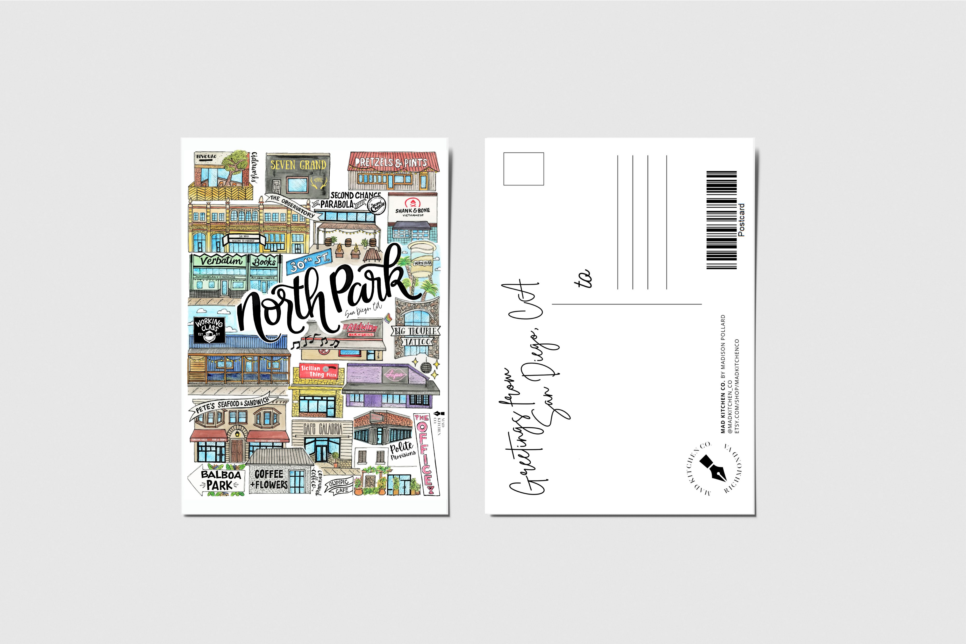 Hand illustrated city postcards. 120lb uncoated opaque stock. Black and white design coordinates with our illustrated map prints. Size: 4" x 6”.