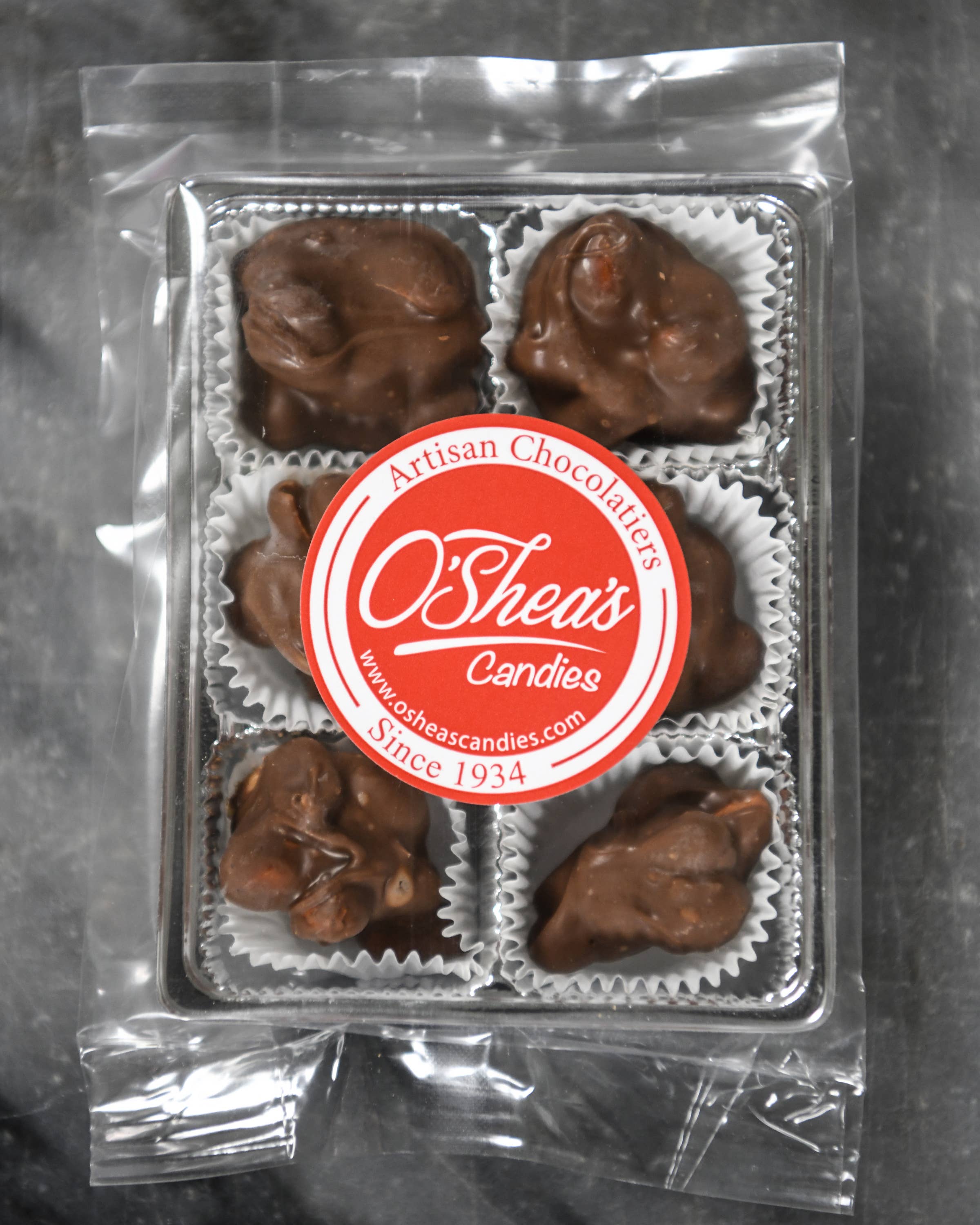 Snack Packs are designed so you are able to Mix & Match for that quick snack. These are six pieces and placed in a silver metallic tray for quick consumption. Have that urge for an item or just need a little pick me up these are a perfect size. These merchandise great on the shelf or in a “Mix & Match” basket by the register. Treat your customers to a premium chocolate treat! We make our Moist coconut from scratch and roll this on our 2 Inch Marble Slab Table. Each piece is hand cut and enrobed in our pure milk chocolate blend. This is one of our founders favorites!