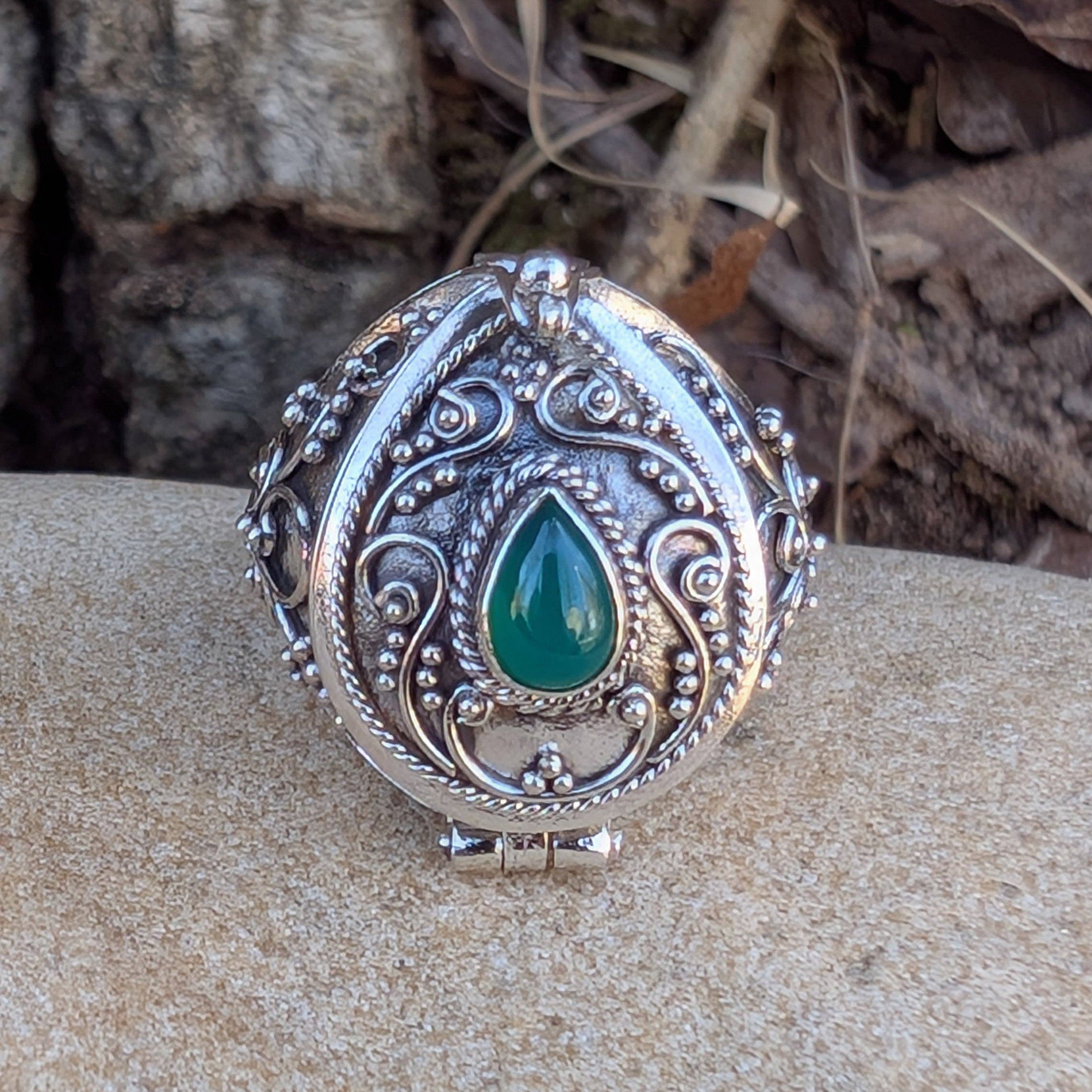 Wholesale Square Genuine Garnet Poison Locket Box Sterling Silver Ring