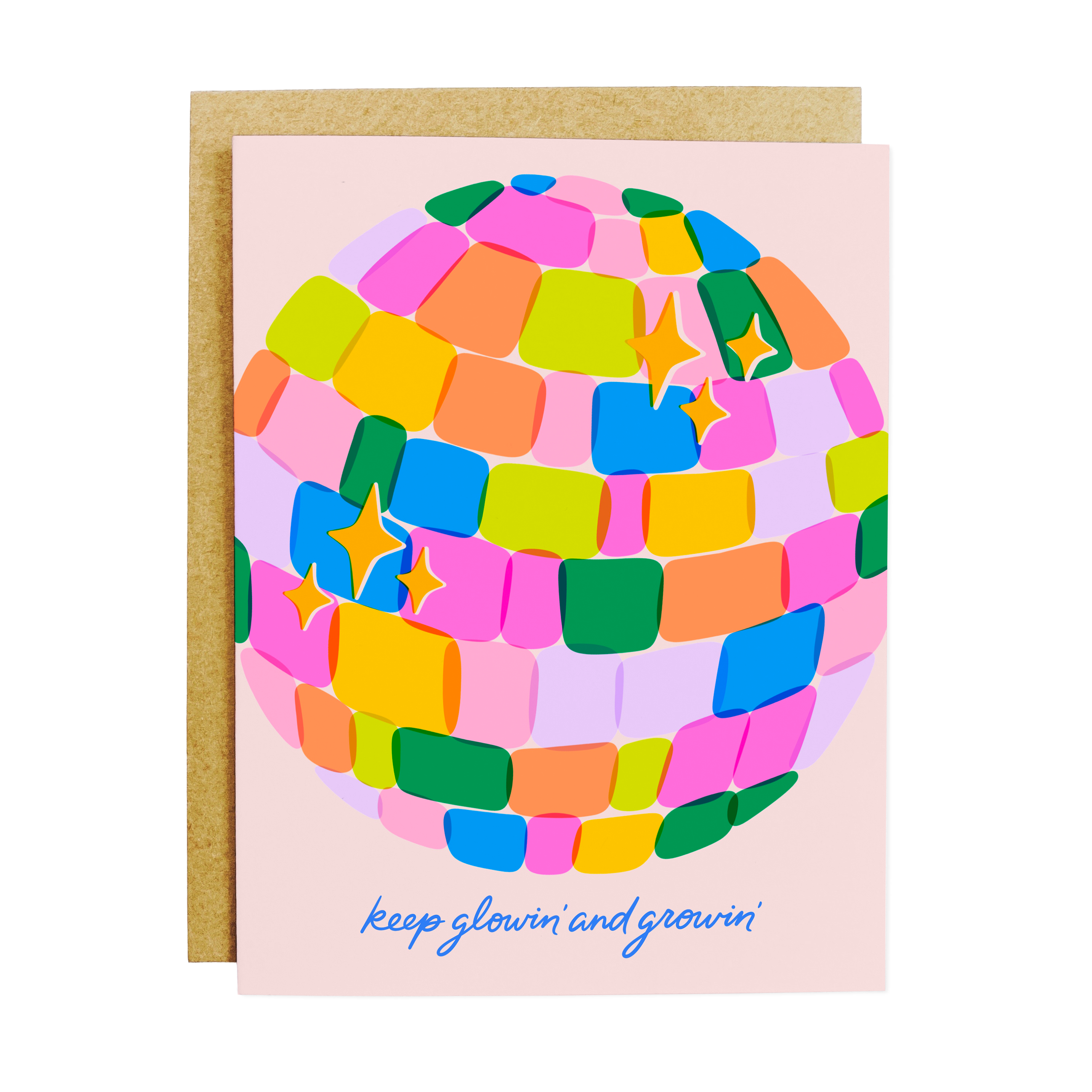 Our A2 greeting cards are designed and printed in house by KANDS.CO on sustainably sourced cover stock and then cut and folded by hand. They come paired with a 100% recycled content kraft peel and seal envelope and packaged in a cello sleeve.