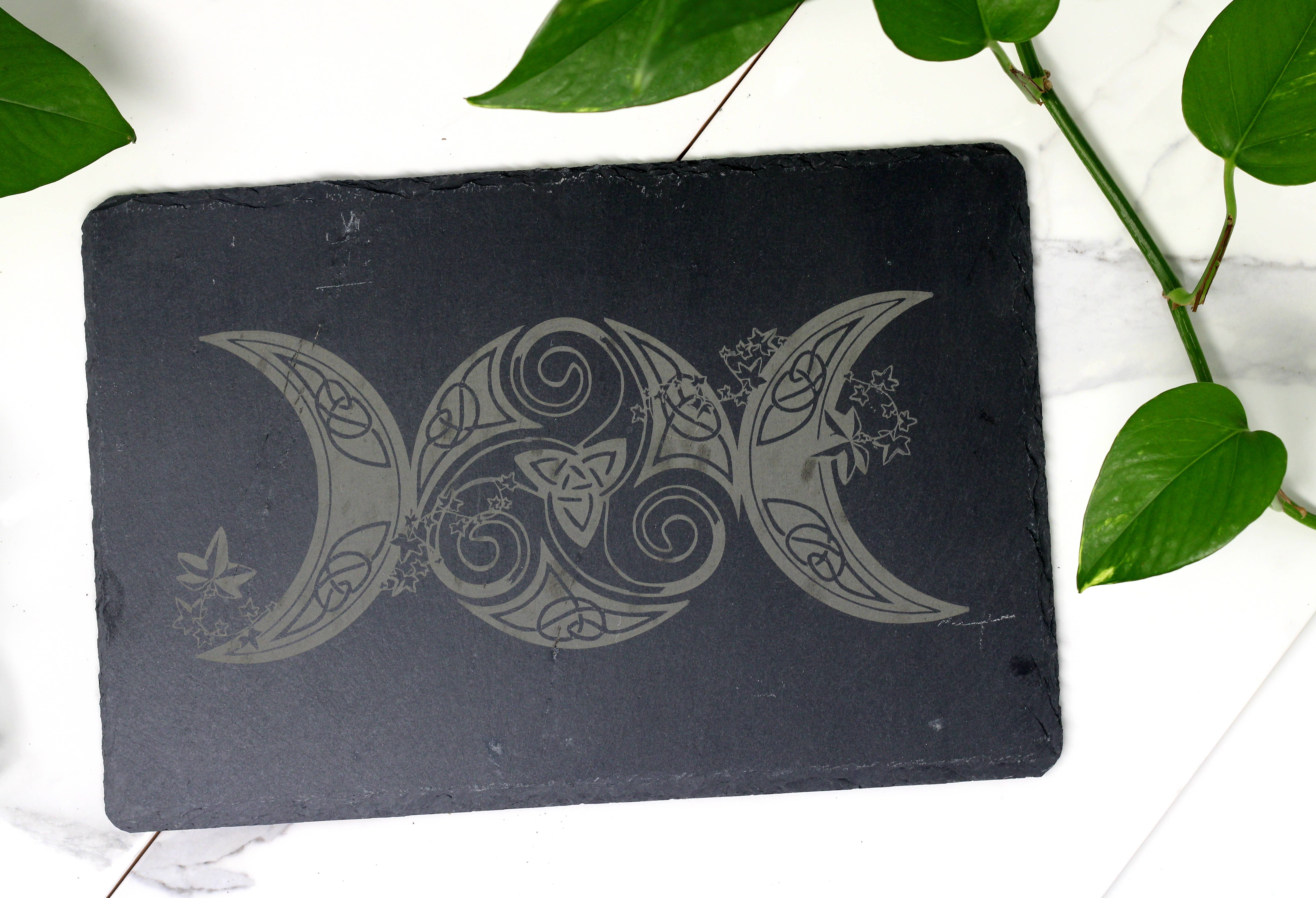 This 7" cork trivet features an engraved depiction of the goddess Hecate. Engraved in Maryland, this trivet can withstand heat + makes any kitchen magical! Hecate or Hekate[a] is a goddess in ancient Greek religion+ mythology, as well as Wiccan and pagan faiths. Most often she is shown holding a pair of torches, a key, snakes or accompanied by dogs and in later periods depicted in triple form. Hecate was the chief goddess presiding over magic and spells. She is often hailed as the triple moon goddess, the mother of the craft. She witnessed the abduction of Demeter's daughter Persephone to the underworld and, torch in hand, assisted in the search for her. Thus, pillars called Hecataea stood at crossroads and doorways, perhaps to keep away evil spirits.