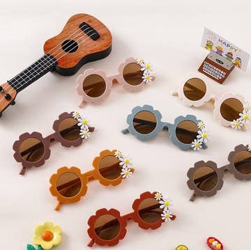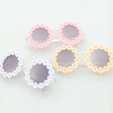 Kitschy — spooky — Halloween fun! No two are alike. Each pair of sunnies will be uniquely handmade using an eclectic mix of beads and cabochons. Surprise! each order is unique and you do not select any beads or sunglass color. Sunnies fit children around age 2-10. DESIGN DETAILS: • COLORS: you will receive a random sunglass color • SHAPE: flower or round sunnies. • BEADS: all will be bejeweled with a combination of seasonal beads, cabochons, pearls and rhinestones. PLEASE READ: • Do not let children put these in their mouths, the beads could break off and become a hazard. • Use gently. If pulled hard, they can break.