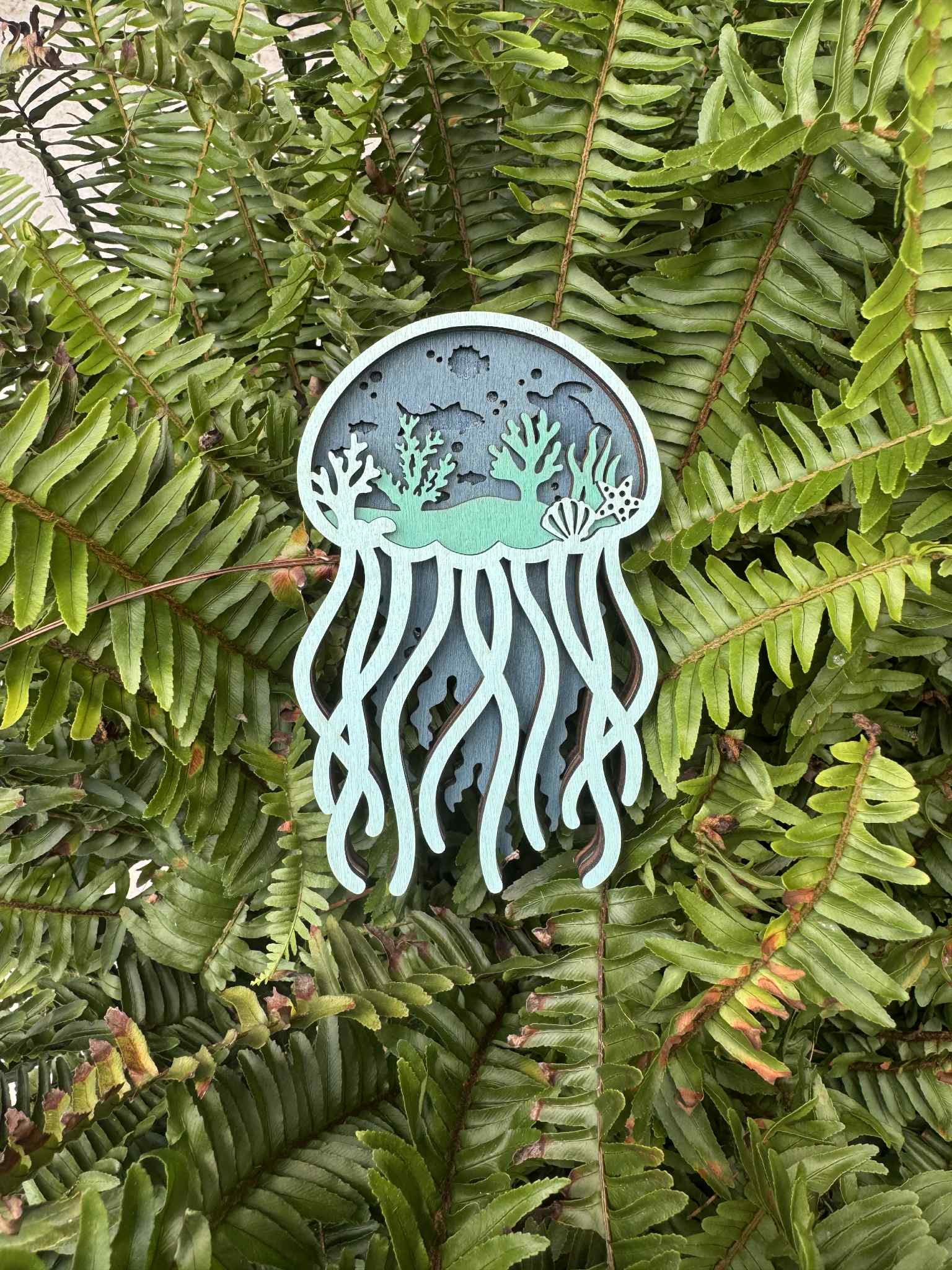 Hand-worked stainless steel jellyfish perfect for any indoor or covered outdoor area.