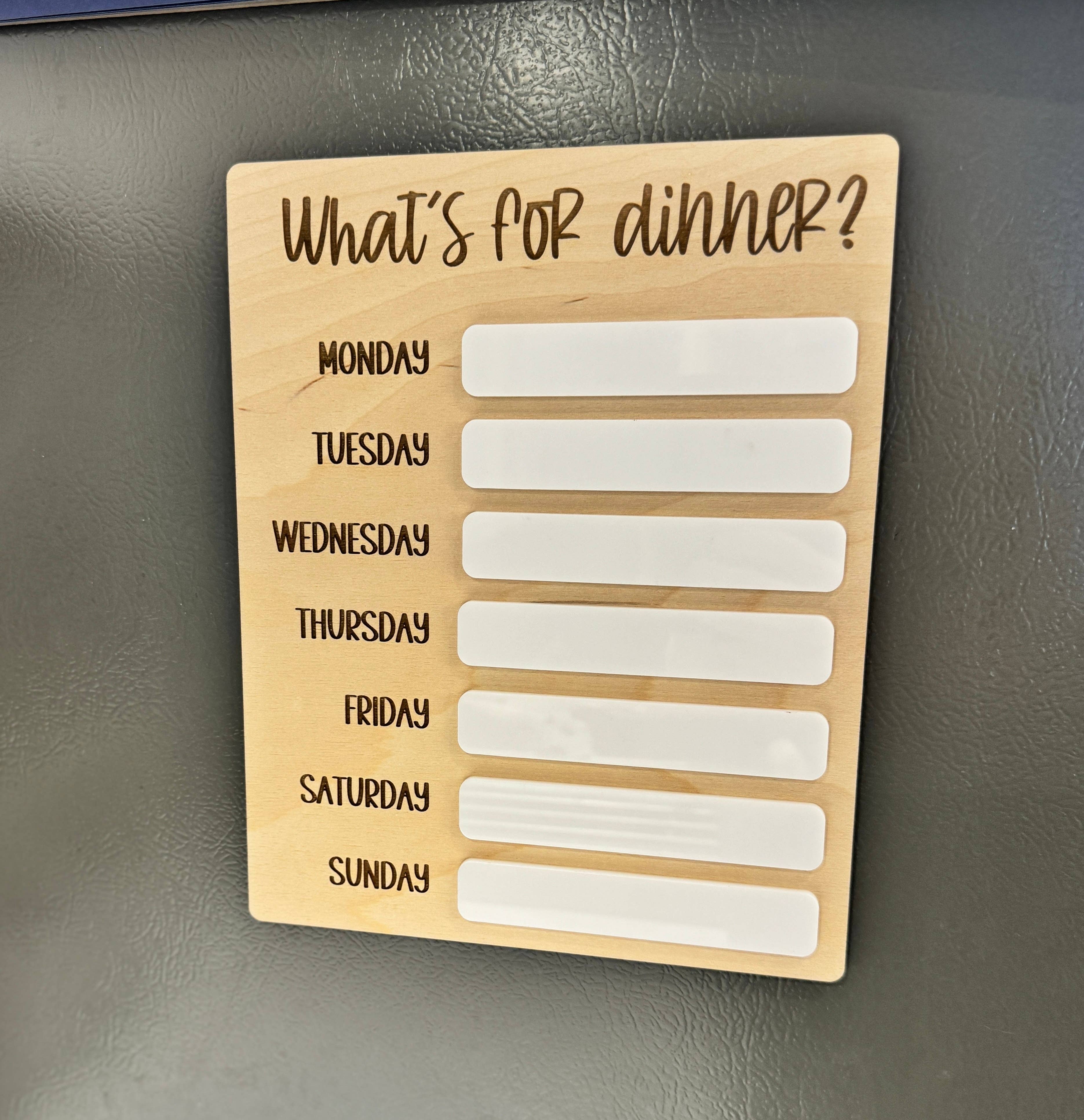 This " Dear Santa " sign is a great photo prop or display for kids to show their holiday wishes. The white areas are dry erase so the entries can be written and changed out. Size is approx 8" x 10". Materials: Baltic Birch wood and acrylic Comes with an easle stand