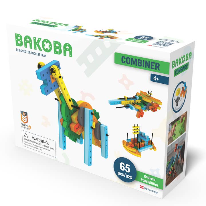 Create anything with this box! From the very simple to the very advanced, making this the perfect box for kids of all ages. Follow the included manuals to build a big, cool car, cute animals and ships that you can bring to the bathtub. This box includes big wheels, making is possible to build all kinds of cool cars and tractors. Eyes are included, which will bring your constructions to life and use the unique ”Connector” to create advanced builds. The building blocks are soft, safe and noiseless and can be washed in the washing machine, creating a perfect playing environment for both kids and parents. BAKOBA is STEM-certified as an educational toy that enhances children’s motor skills and creativity. In addition to this, BAKOBA has won a Reddot design-award for the toy’s innovative design. Recommended age: 3-99+