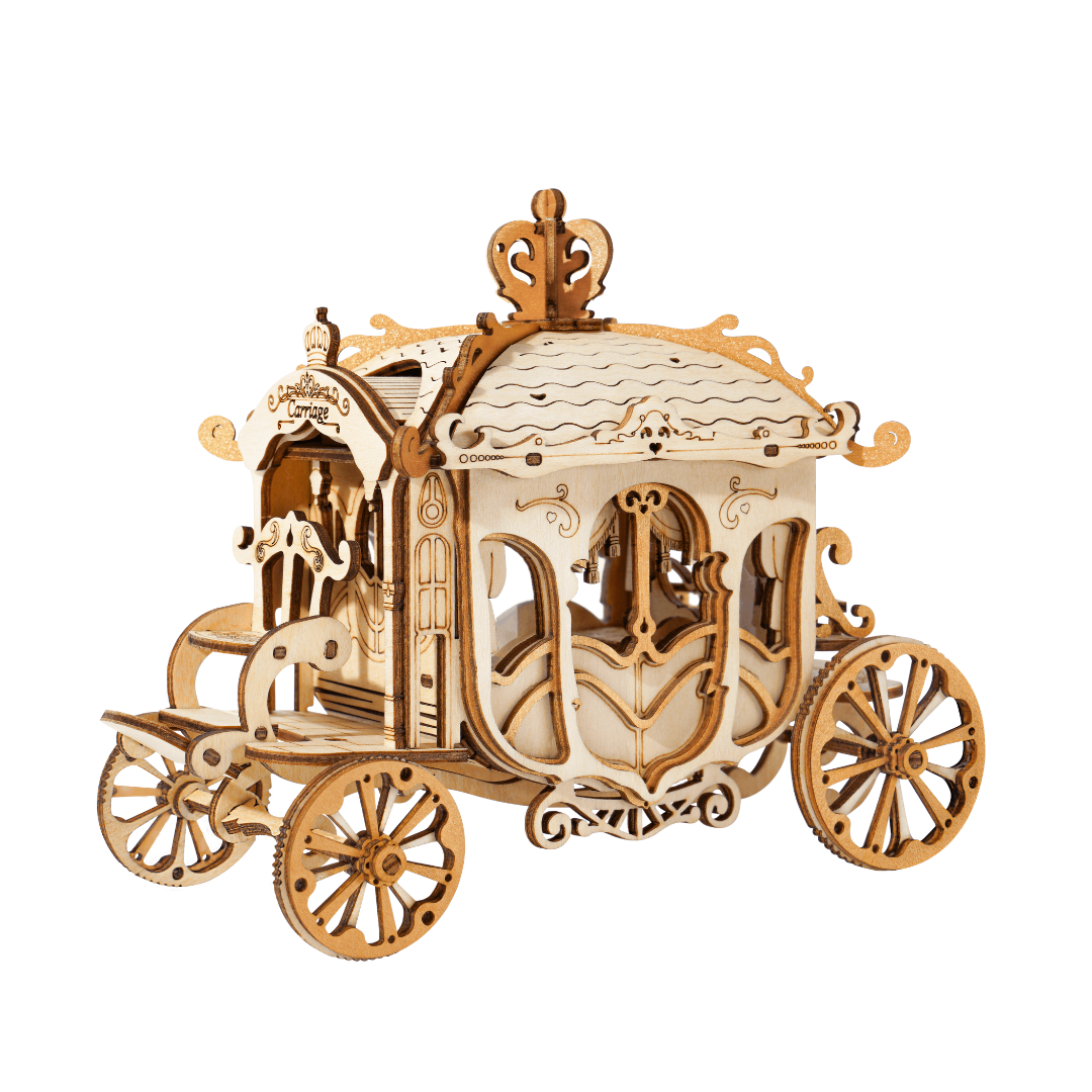 Carriage—a fun 3D puzzle project and a stylish home decoration once finished. • Laser-cut wood • Assembled Size: 155 x 85 x 125 mm • Puzzle Pieces: 92 pcs