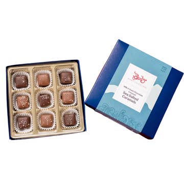 SHELF LIFE: 56 DAYS We make our signature dark chocolate sea salt caramels with organic sugar, local honey, Maine sea salt and direct-trade 55% EcuadorianĀ dark chocolate. We carefully package the caramels in recyclable paperboard boxes and tie them with high-quality grosgrain ribbon. Choose between an 8-piece box, 18-piece box or 28-piece box. Ā