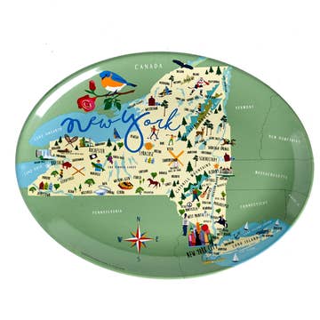 Celebrate New York with this beautifully crafted bamboo cutting board! Shaped like The Empire State, it features laser-engraved artwork highlighting the iconic towns, landmarks, and sights that define New York. Shoppers love using it as a fun, conversation-starting charcuterie board for serving crackers, cheese, meat, fruit, candy, and other favorite snacks. The blank reverse side offers all the benefits of a bamboo cutting board: a durable, lightweight, and knife-friendly cutting surface. Cut on the back and serve on the front to minimize clean up! When not in use, the included hang tie easily transforms the cheese board into eye-catching home decor.