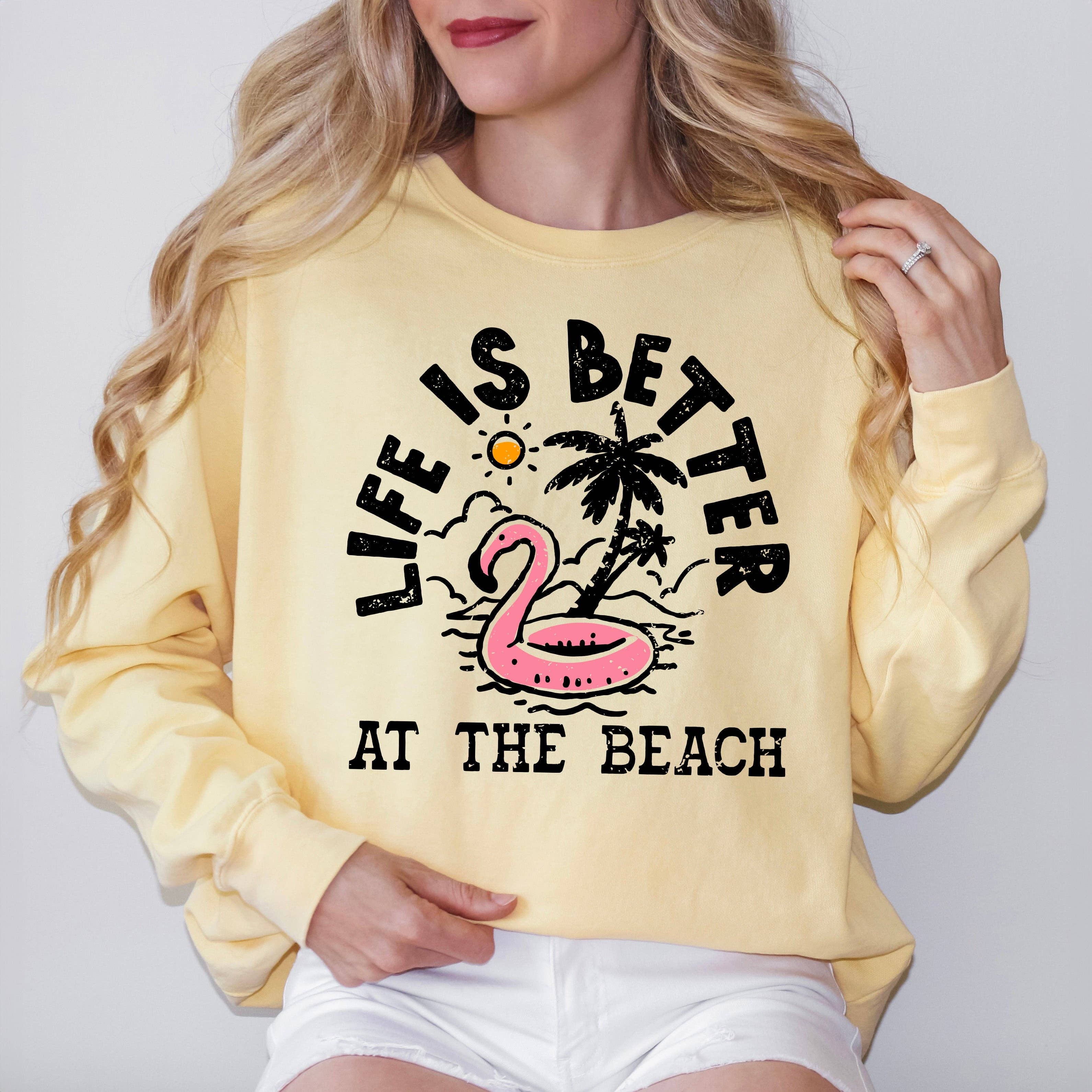BEACH VIBES Graphic Sweatshirt - Premium 8oz., 50/50 cotton/ polyester - Air jet yarn for softer feel and reduced pilling - Unisex sizing - Classic fit - Designed and printed in Los Angeles