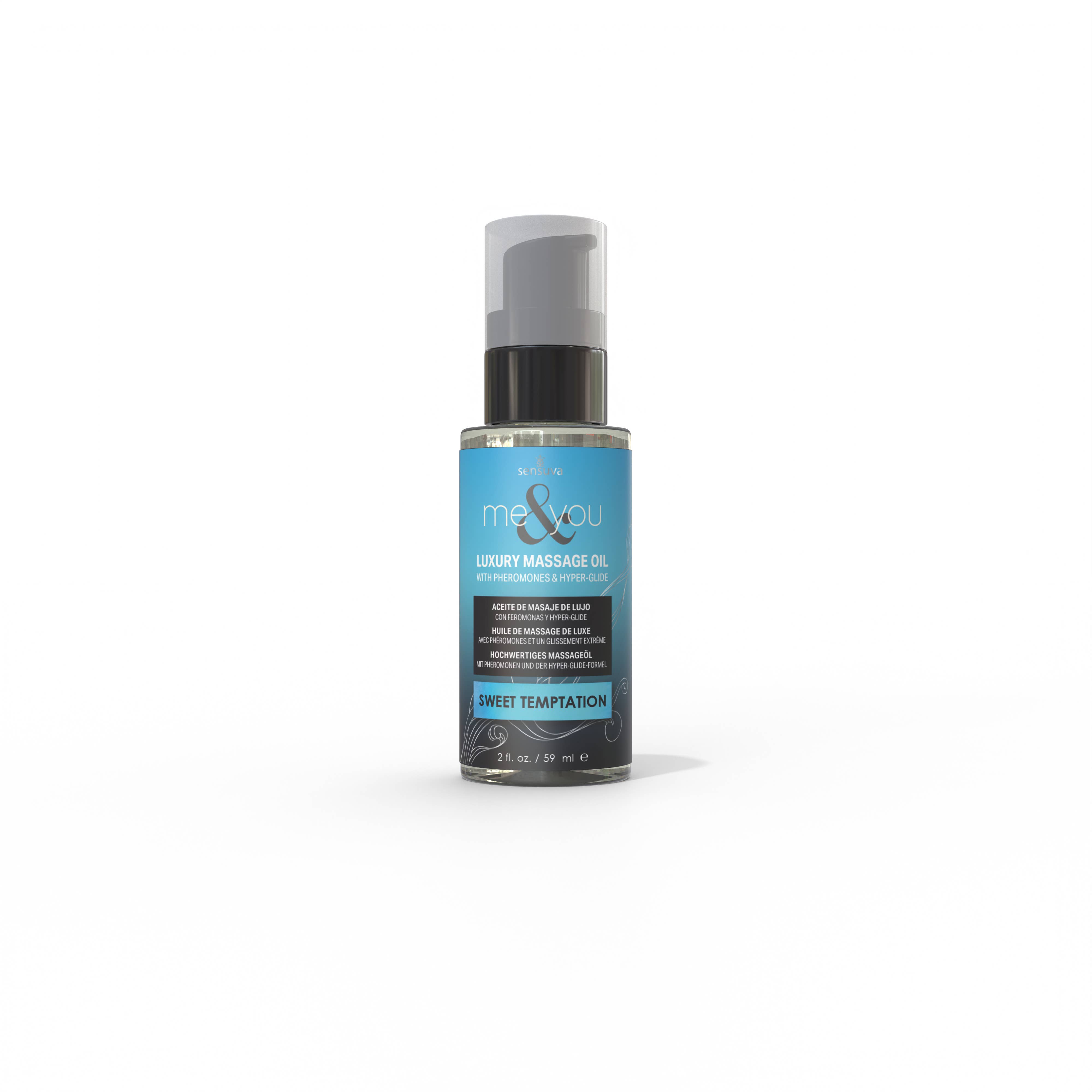 Scent Profile: Pink Grapefruit & Vanilla Bean The Me & You line of luxury massage oils & lotions are infused with (gender-friendly) pheromones to make both partners feel attractive and turned on. We've added our special hyper-glide which has a touch of silicone so that your massage oil or lotion can stay on the surface of your skin longer. A little bit goes a long way, and you will end up using less product and be able to enjoy a longer lasting massage.