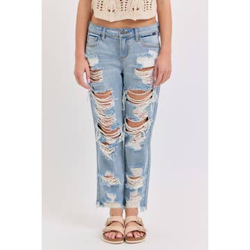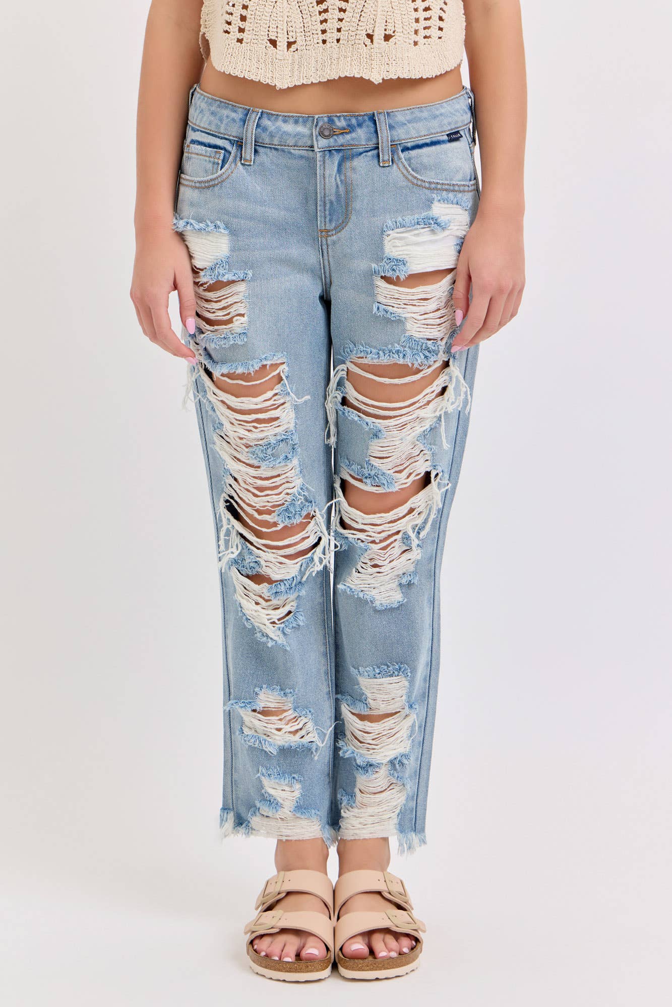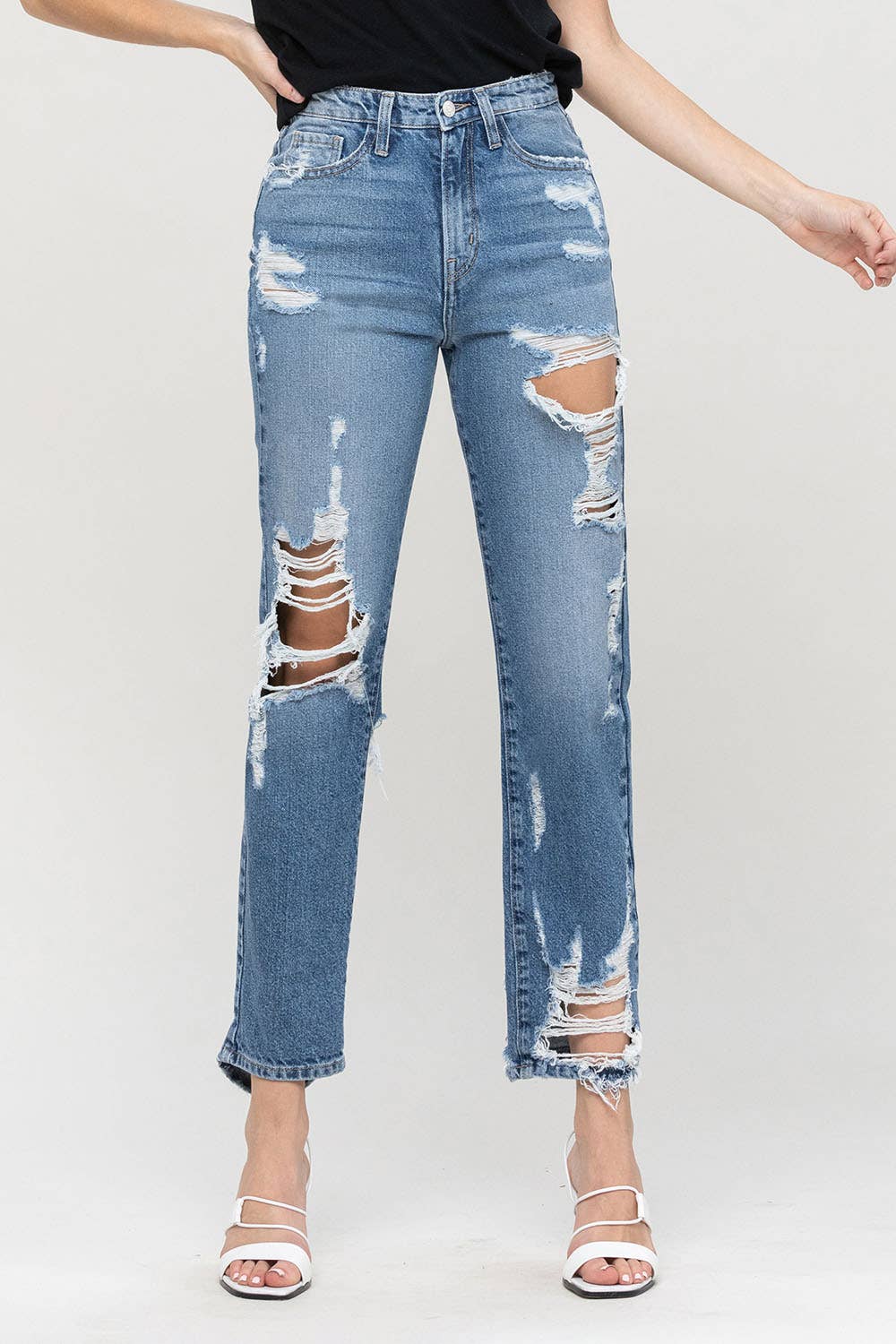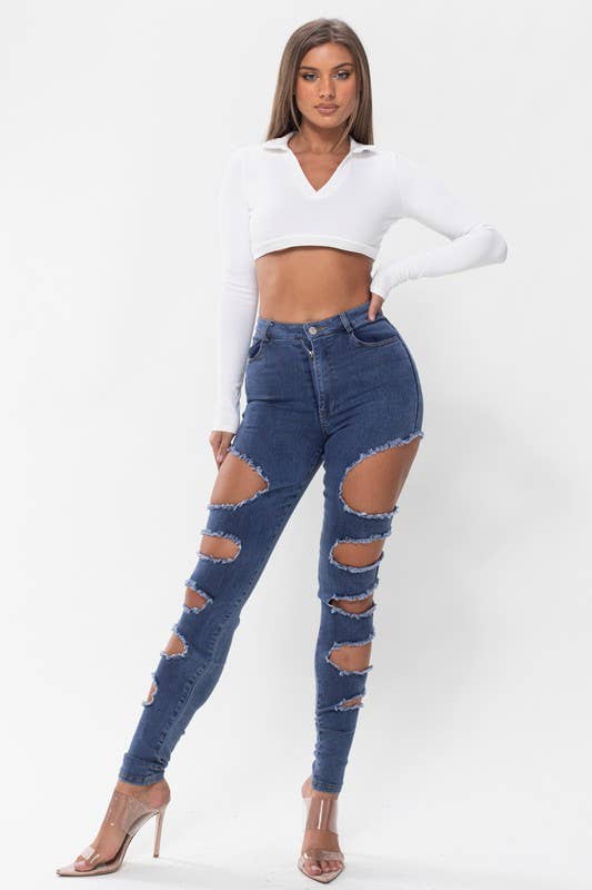 HIGH WAIST CUT OUT DISTRESSED JEANS-RJH20360