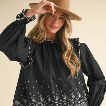 +BLOUSE +LONG SLEEVE +PETER PAN COLLAR MODEL IS WEARING S
