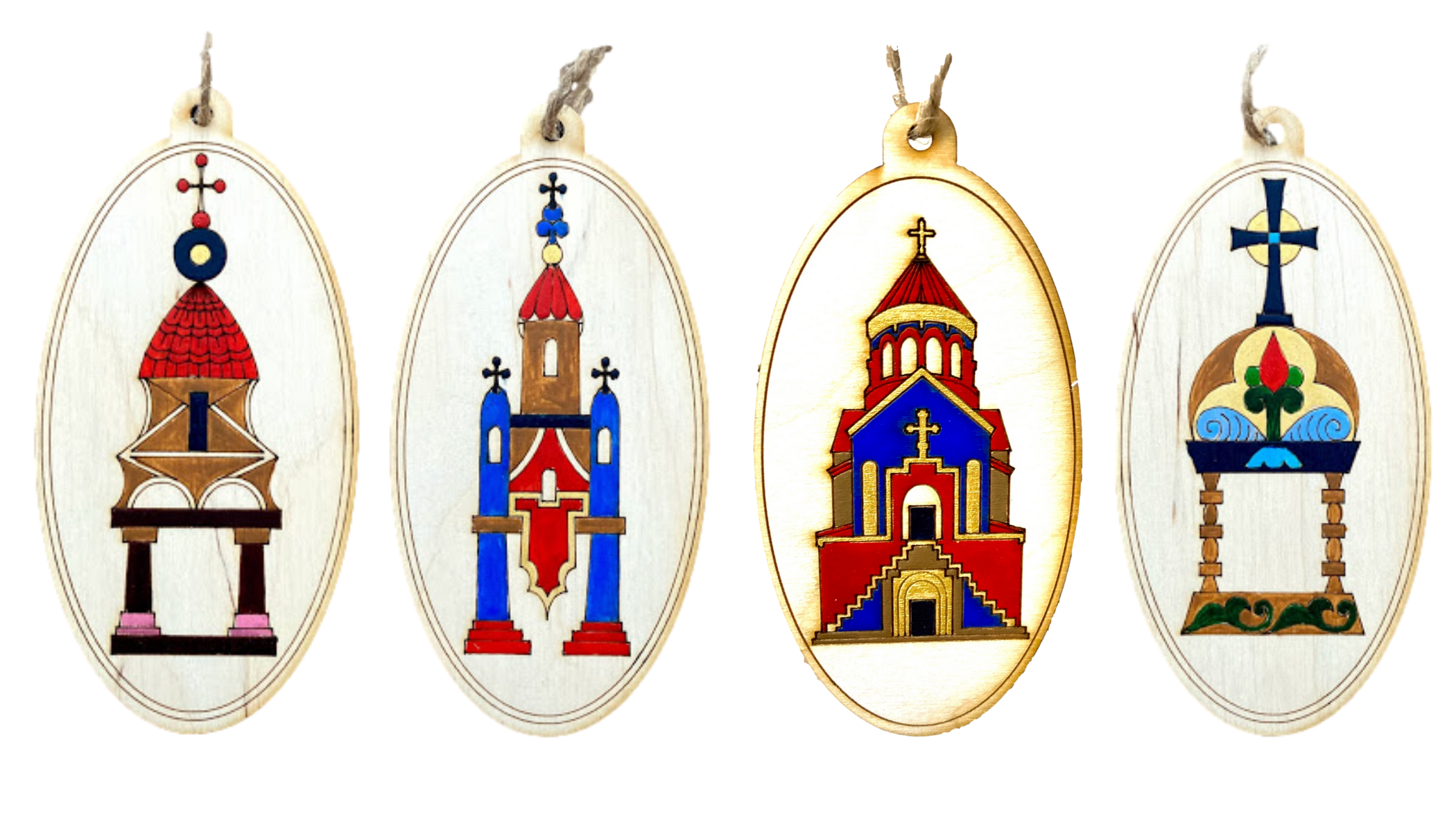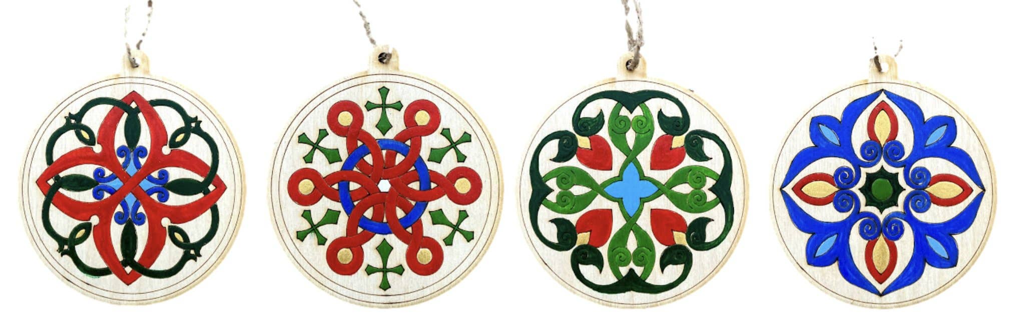 These beautifully hand-painted wooden ornaments are made by Armenia's Yereqnuk Handicrafts at the Koghb Art School. This unique series features different pomegranate motifs. Engraving on back reads: "Pomegranate carvings found on Armenian gospels and manuscripts around the world." The goal of the art school is to develop applied arts and create jobs in rural areas. Copyright 2025 © Homeland Development Initiative Foundation. We love these for a Christmas tree, holiday hostess gift, package topper, Sunday School gift or special event or stocking stuffer. Approx. size: 3.5 inches in diameter Material: Plywood