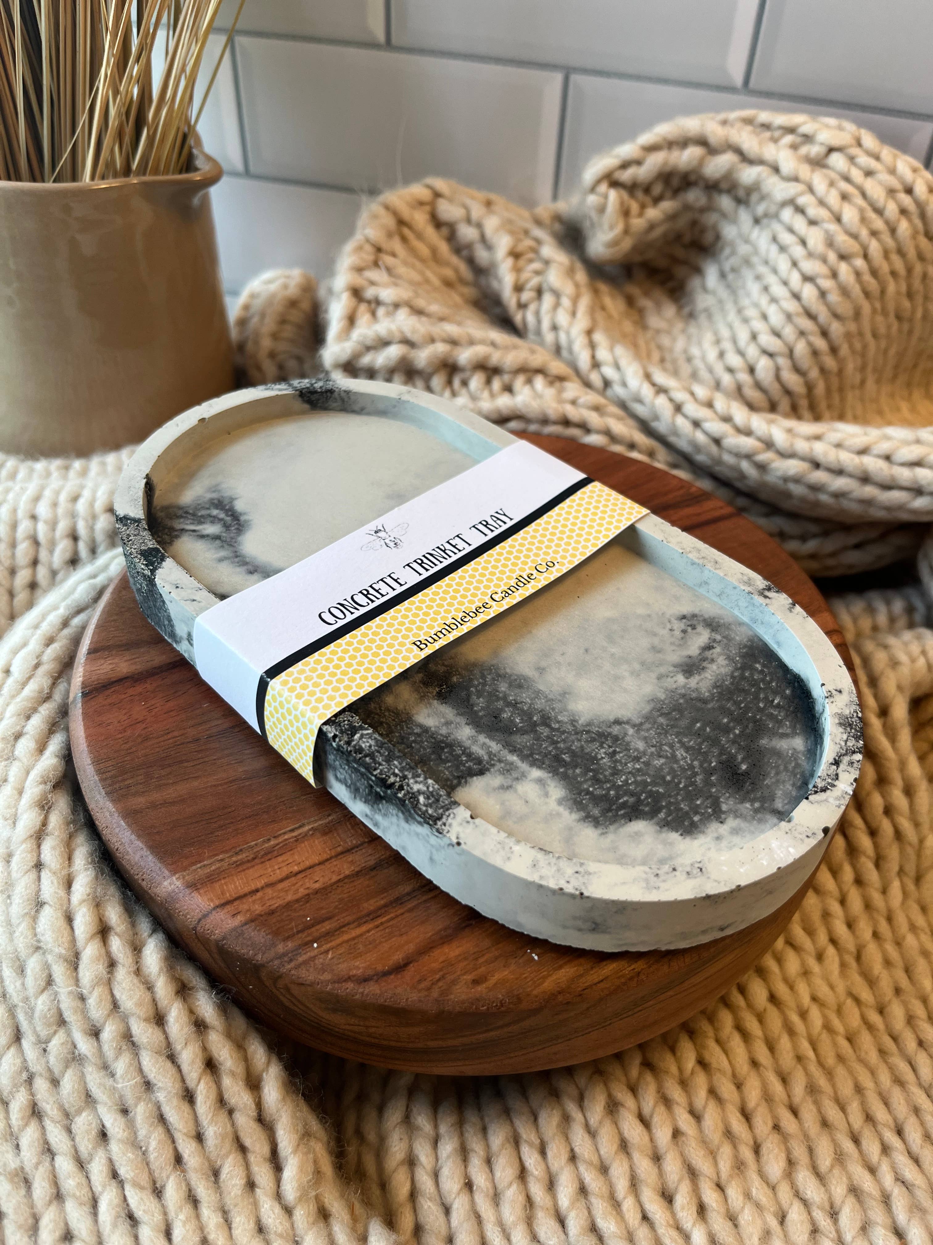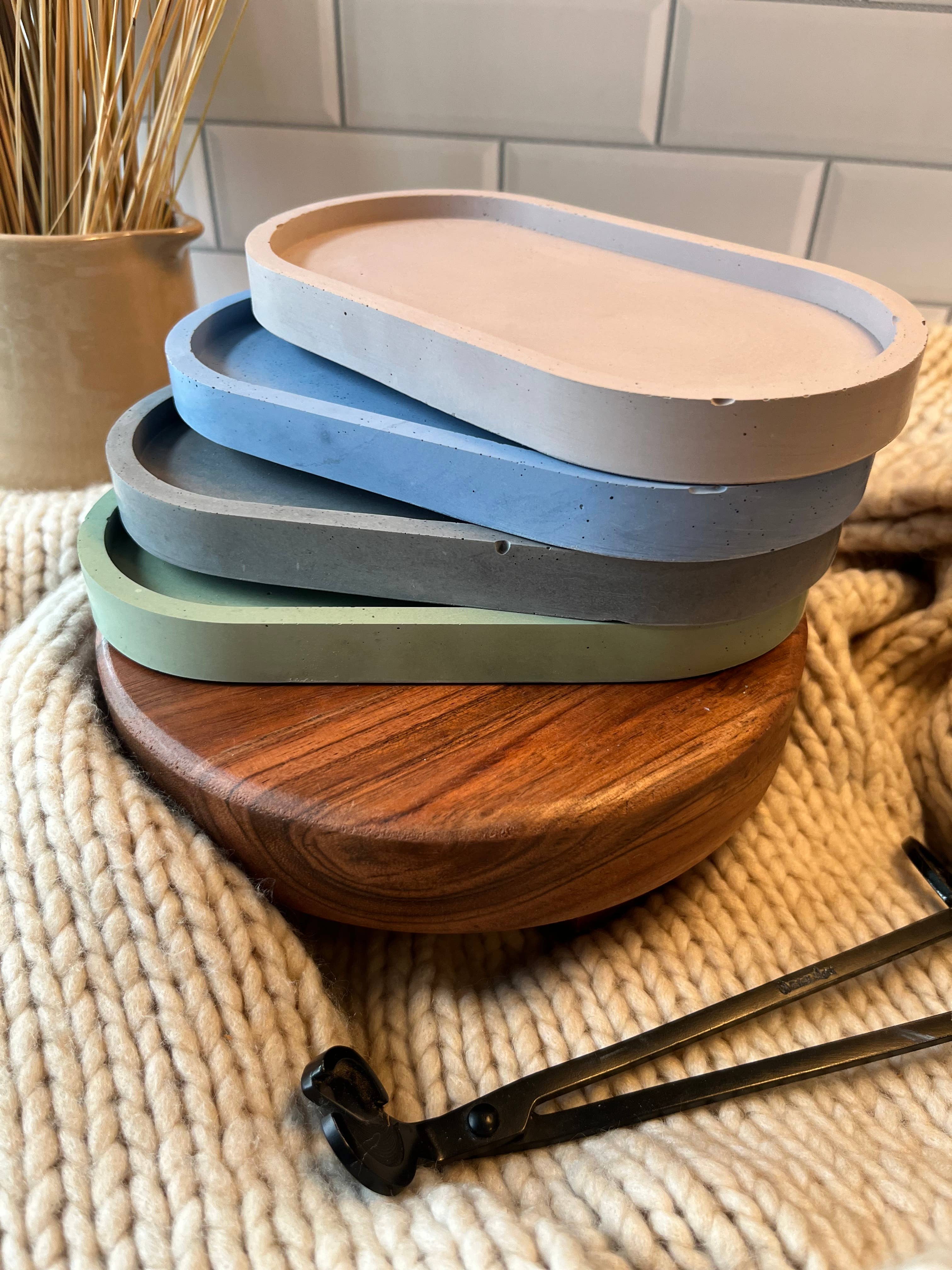 Each handmade concrete Trinket Tray is mixed and hand-poured in Hilliard, Ohio and measures 7" x 3.75" x 0.5". Perfect decor piece to display jewelry, small items, etc.