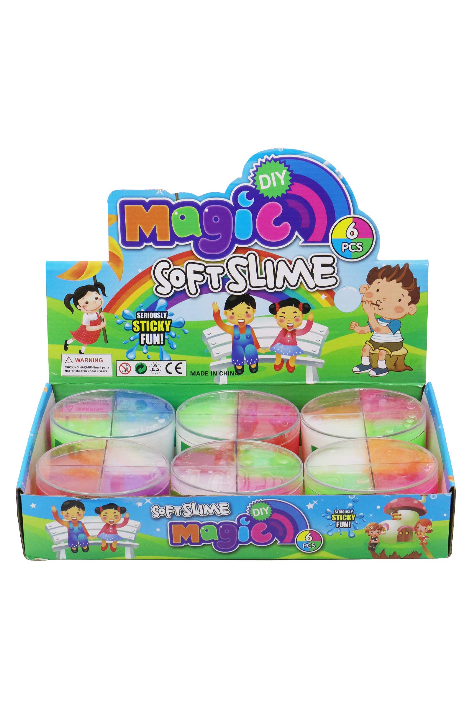 • Multiple color putties in a rainbow container • Great for fidgety hands • Assorted colors • 12 pieces sold in a display • Ages 3+