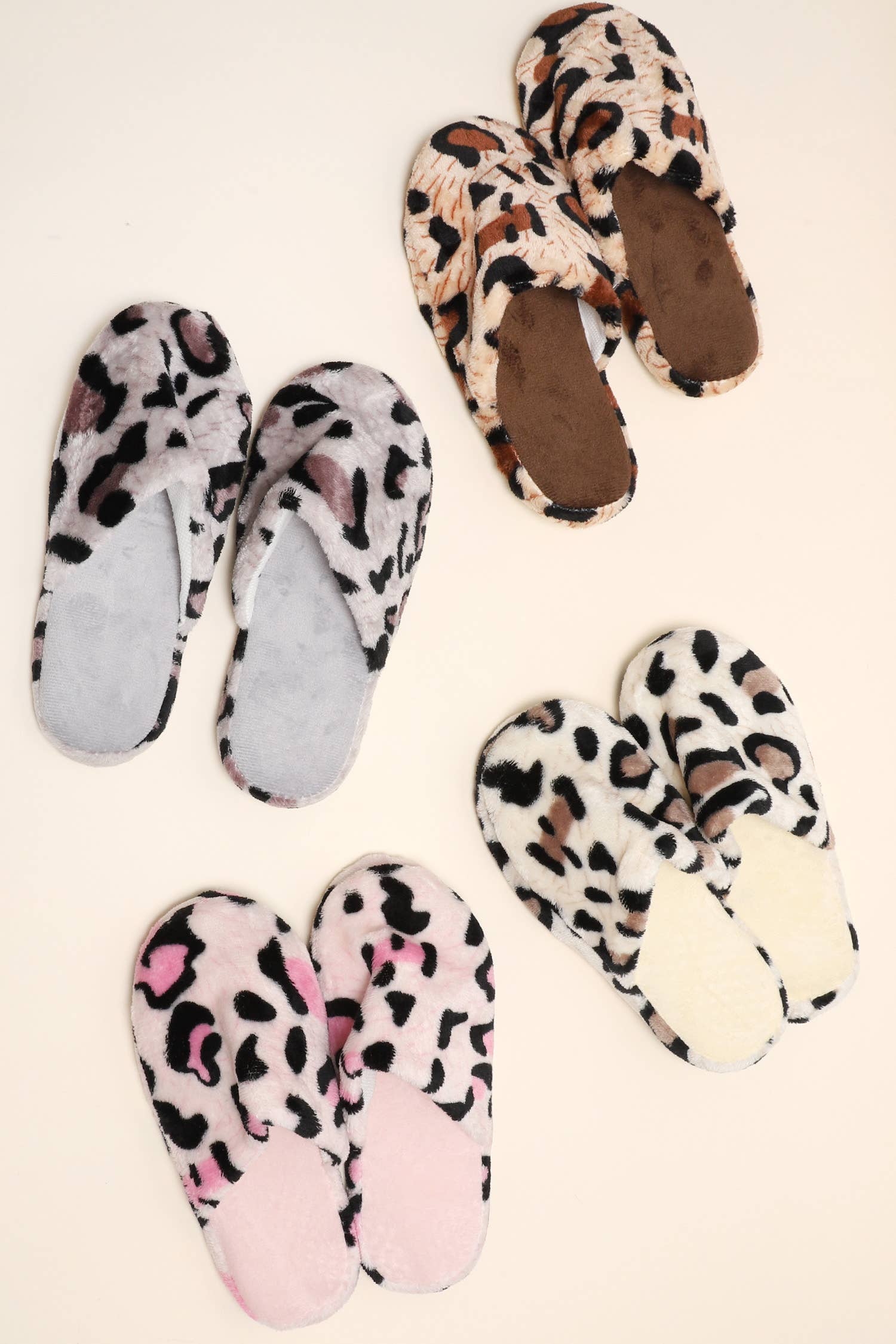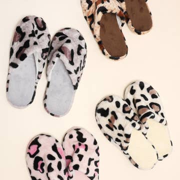 Leopard criss-cross slippers 100% poly. microfiber S/M-SIZE 7-8, M/L-SIZE 9-10