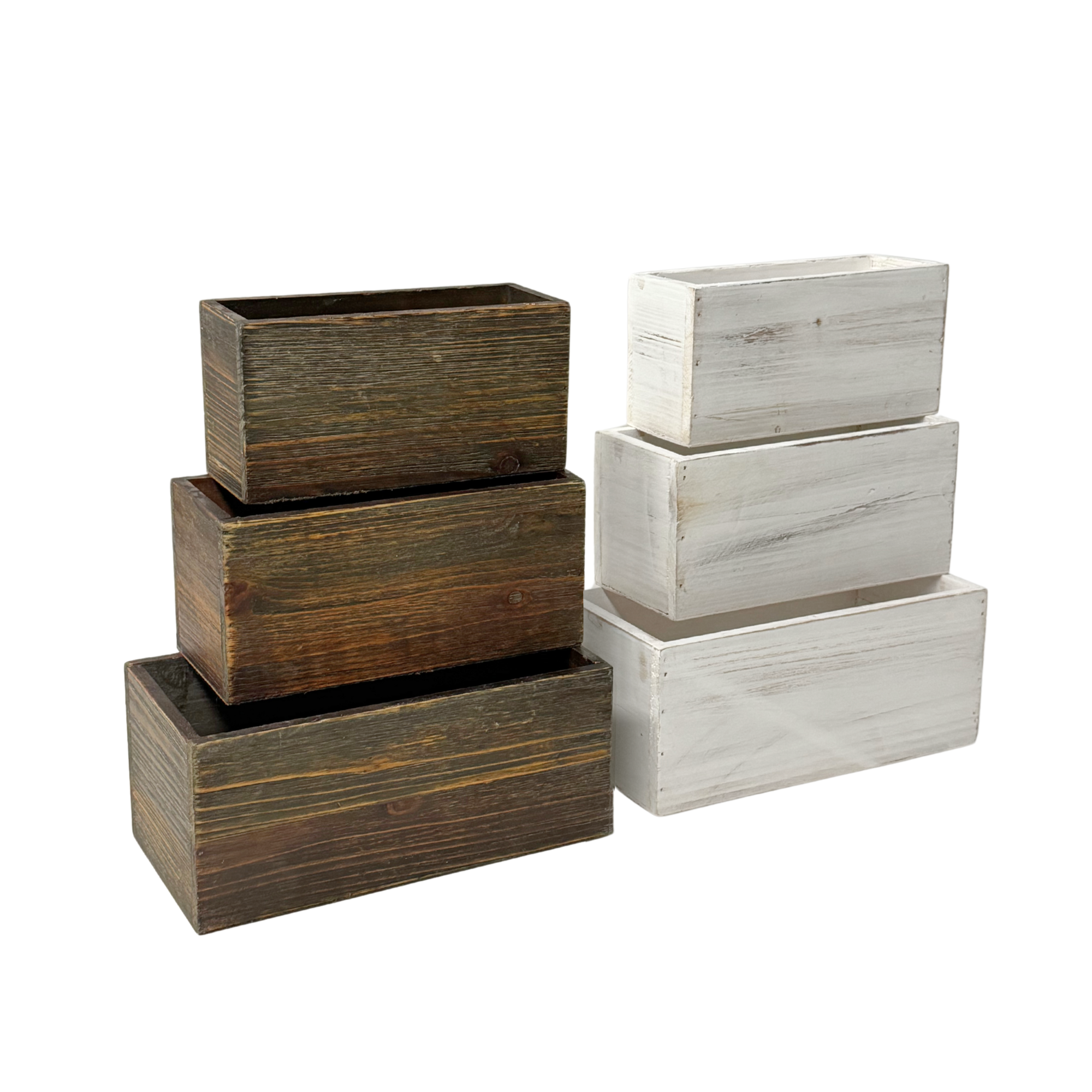 Wood Planter Whitewash Assortment Set/2