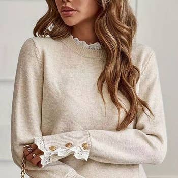 Ruffle Collar V-Neck Button Knit Sweater