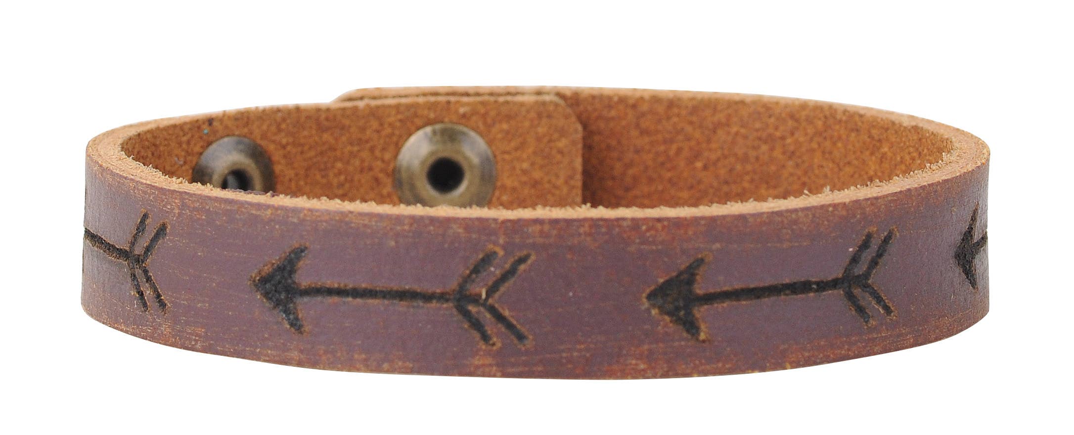 This wrap bracelet has stars and arrows tooled on it. Prepack of 4.
