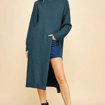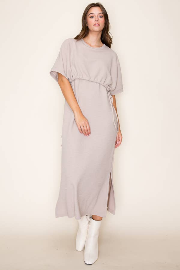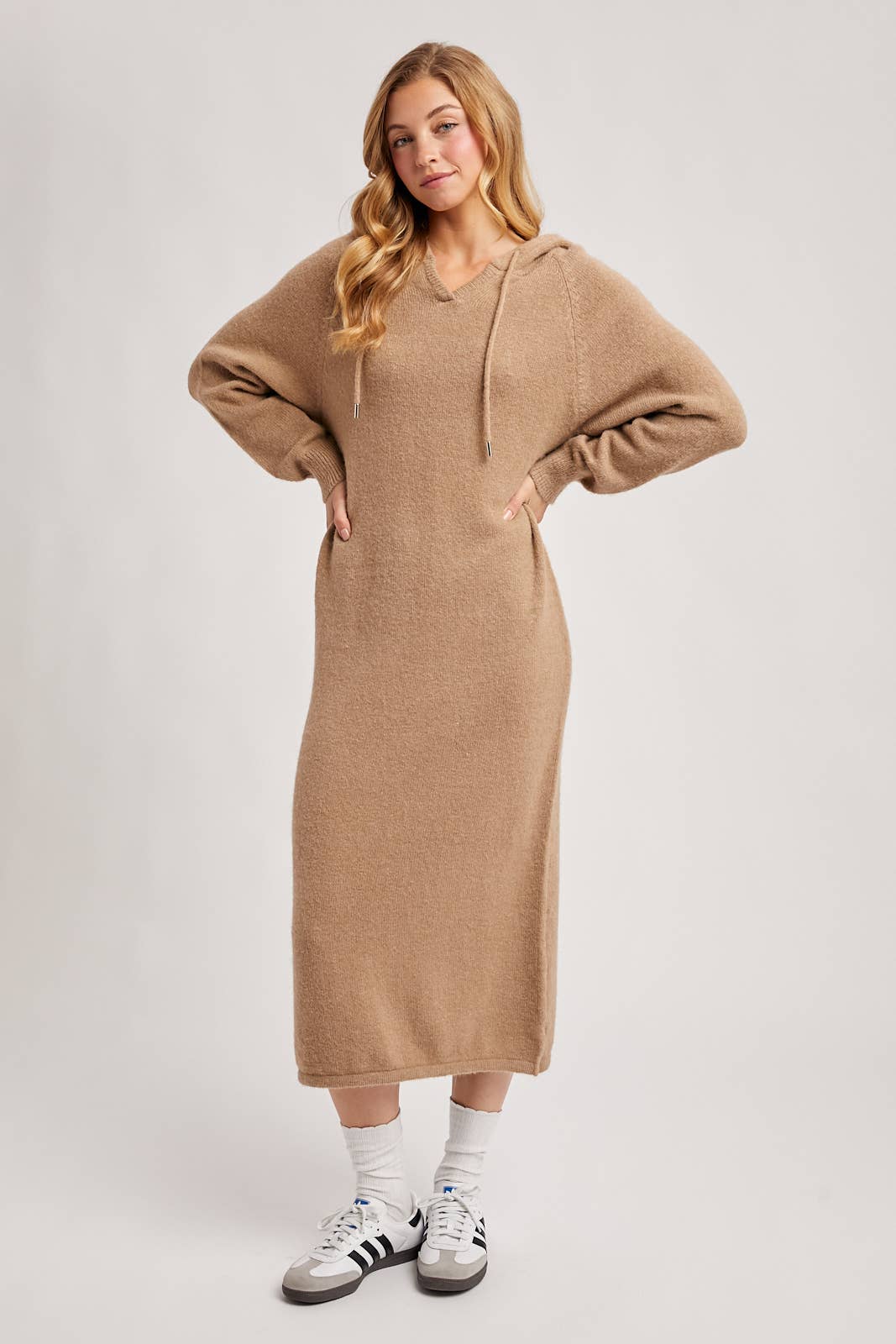 Super soft sweater dress, long sleeve solid hoodie maxi dress with small cut detailing on the sides.