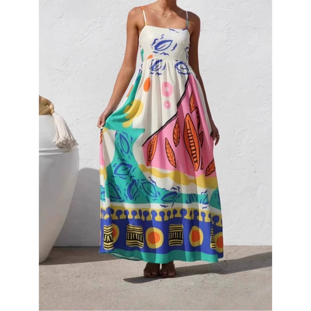 Wholesale 2025 Delphine Tropical Islands print flare large swing dress