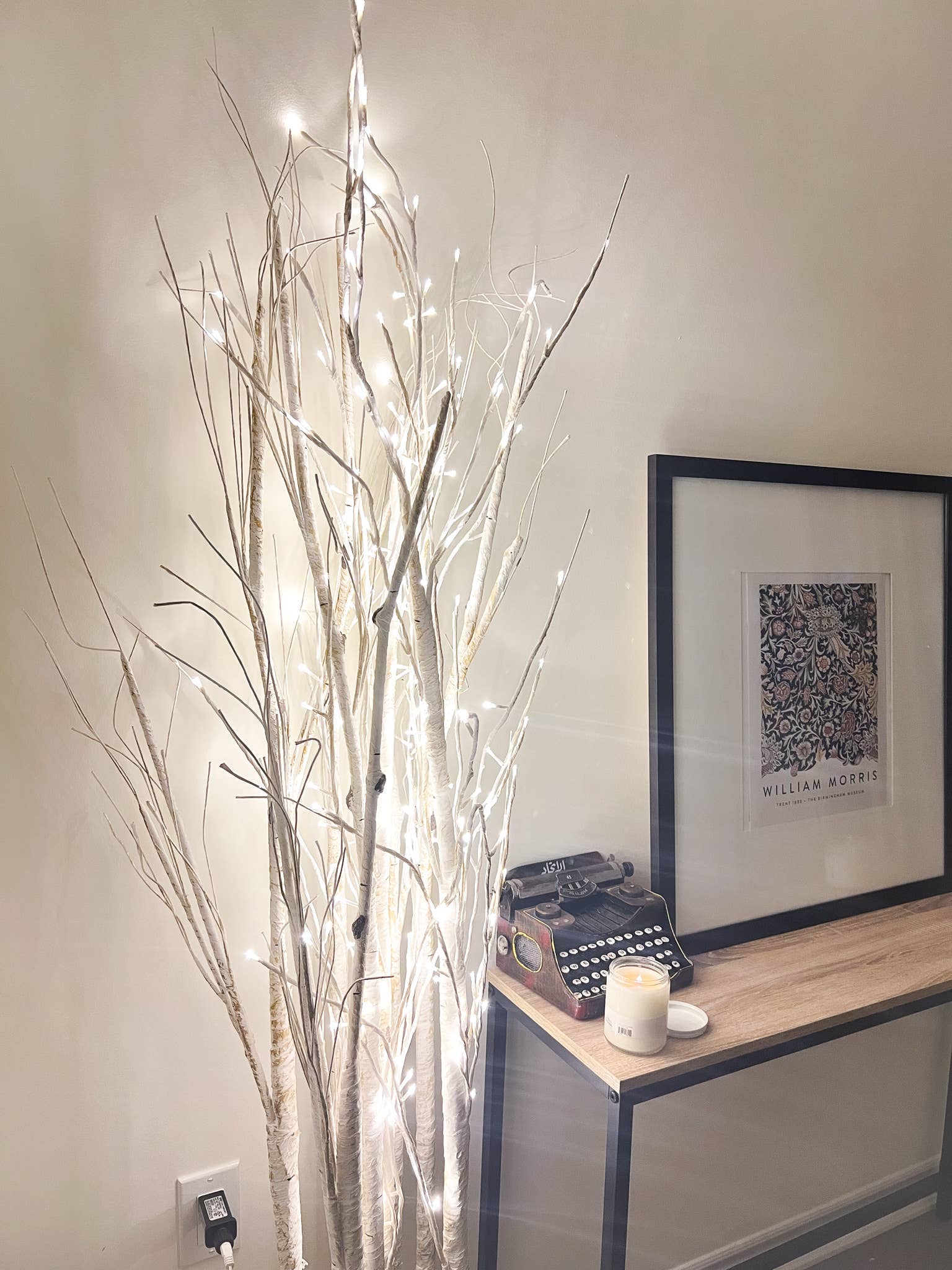 208 White LED Indoor/Outdoor Cherry Tree Cherry tree with beautiful white floral lights. Features 208 LED lights (includes 6 glimmering LED lights) 44" height Adapter Included Lead wire 197" Indoor/Outdoor use DC350mA Adaptor IP44 Transformer