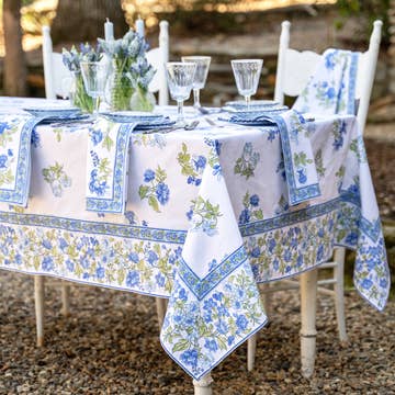 Step into the enchanting world of the French Riviera, where the sun-kissed coastline meets the azure waters of the Mediterranean. The Azulejo Blue Collection features delicate botanical and floral motifs capturing centuries of aesthetic tradition. Everyday can feel like alfresco dining when you set the table with the Azueljo Collection. Each high-quality linen is hand-printed by skilled artisans using a time-honored technique resulting in a singular piece of craftsmanship.