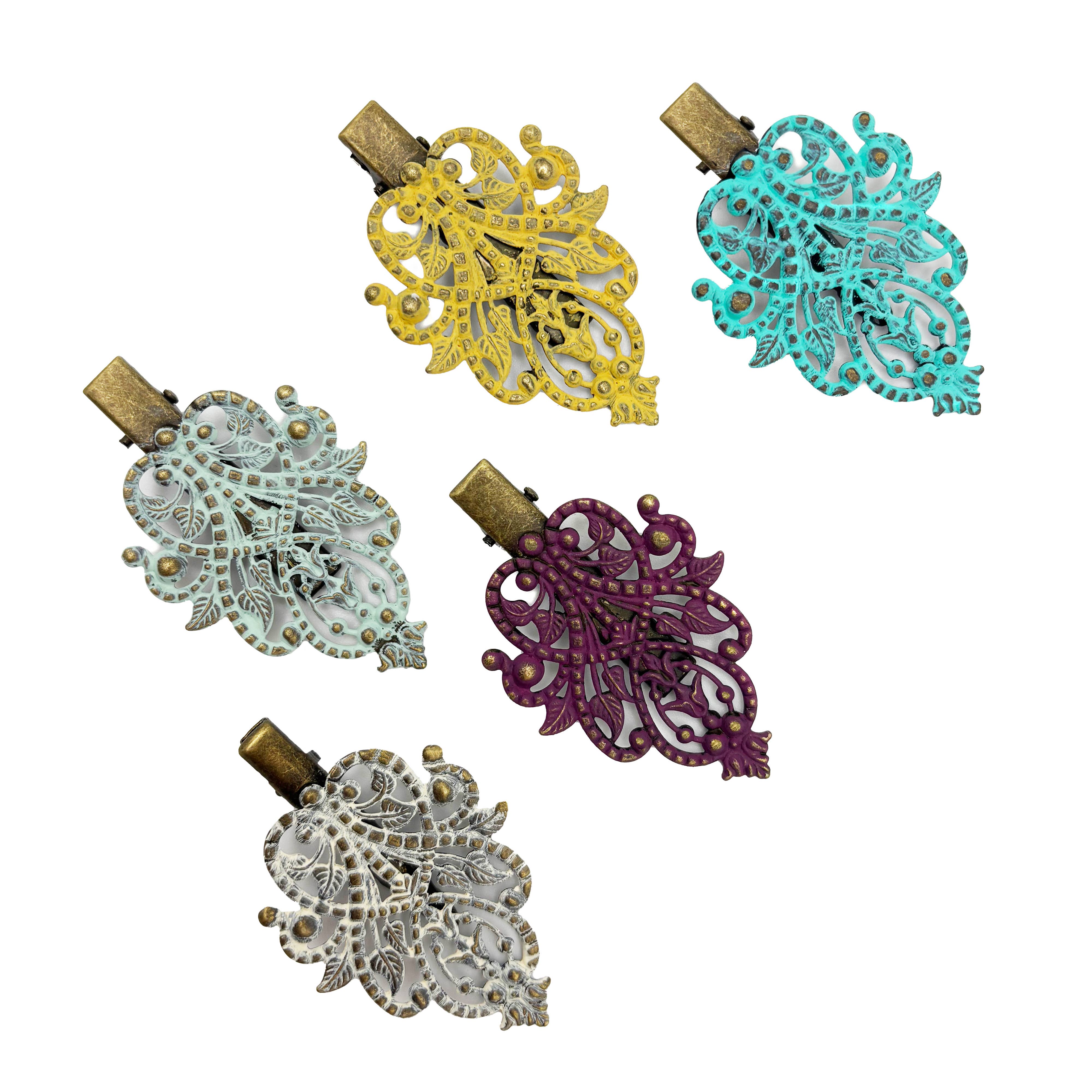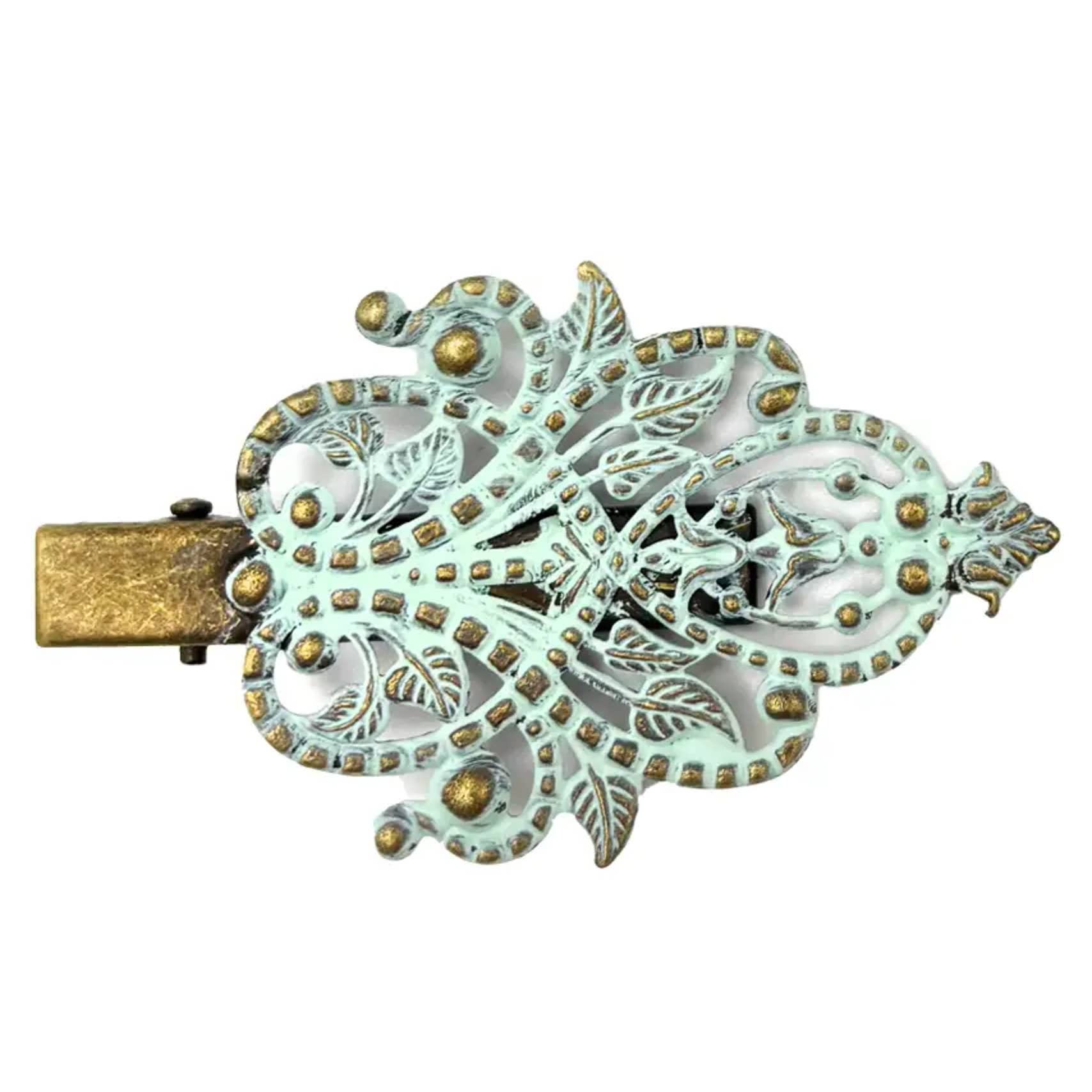 As fresh as a walk in an English garden, this lightweight vine hairclip proclaims your connection to nature and your free and easy bohemian style. ARTISAN TOUCH: Our skilled artisans hand-paint each piece in Denver, CO, and carefully assemble your hair clip. MEASUREMENTS: 1.75” wide by 1.5” HYPOALLERGENIC: Lead-free and nickel-free