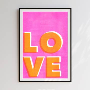 When it comes to wall art, Love is all you need! This bold, bright art print with its large “LOVE” artwork in a typographic design is the perfect splash of colour to add to any room, making a statement with its vibrant colour. The easy-to-frame A4 print is a spectacular Valentine’s gift idea, and also sells year round as a birthday gift and colourful home decor for your customers to treat themselves. The risograph print is made in the UK, cold pressed using non-toxic ink that leaves a unique, character-filled texture - each of these pink art prints are one-of-a-kind. The sustainable method is preferred by UK based brand House of Payne for its minimal impact on the environment, creating eco friendly art prints that stand the test of time. Poster prints are packaged in biodegradable cello. A4 Art Print Features: Size: 210 x 297mm / 8.3 x 11.7 in 170gsm FSC-certified paper Risograph print Made in the UK Packaging: recycled board back Biodegradable cello bags *Frame not included.