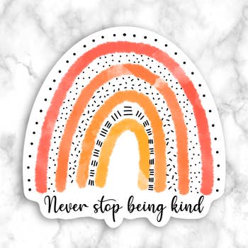 2" matte vinyl sticker ethically printed in the USA Durable on laptops, water bottles, journals, etc. Copy: "Be a rainbow in someone else's cloud" - Maya Angelou. Final Stock - Available while supplies last