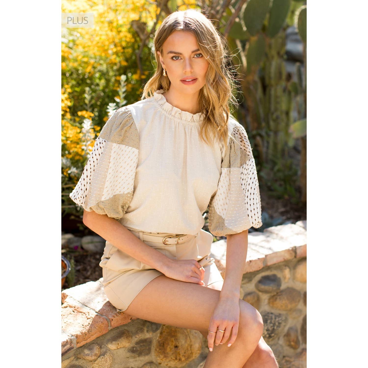 Puff Sleeve Textured Detail Top
