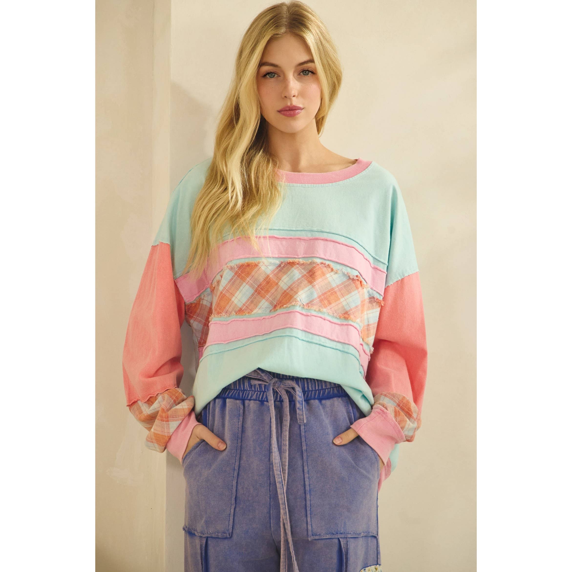 X114-ALEXA COLOR BLOCK AZTEC HACCI TOP