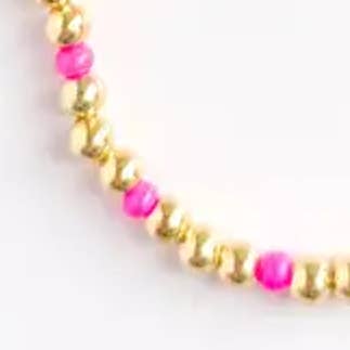 This 14k gold-plated beaded bracelet dazzles with its splash of hot pink, blue, lime green, or orange, making it a playful yet elegant accessory for any outfit. At its heart, a lustrous freshwater pearl adds a touch of timeless sophistication. All bracelets are 7". - Seed beads - Freshwater Pearl - 14k gold plated 5mm beads - elastic - handmade