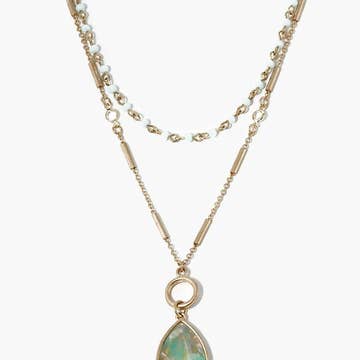 Like a moth to a flame, the flash inside labradorite is truly mesmerizing. Labradorite are embedded in brass and anchored on our signature brass chain with our handmade clasp. Pendant Length 3/4" Pendant Width 3/8" Chain Length 16" - 18" This piece is handmade-to-order. Each piece will vary slightly due to the uniqueness of the stones. All metal is nickel-free.