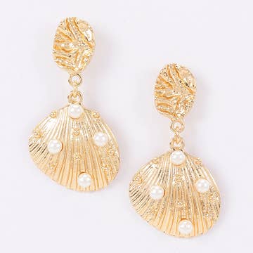 Bring coastal elegance to your style with the Galapagos Pave Shell Earrings. Featuring shiny gold shell designs and sparkling pave accents, they’re ideal for beach-inspired glamour. DETAILS Base Metal with Shiny Gold Plating 2"L x .5"W