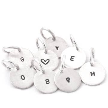 Each initial charm is created in fine pewter and stamped in our large simple font.