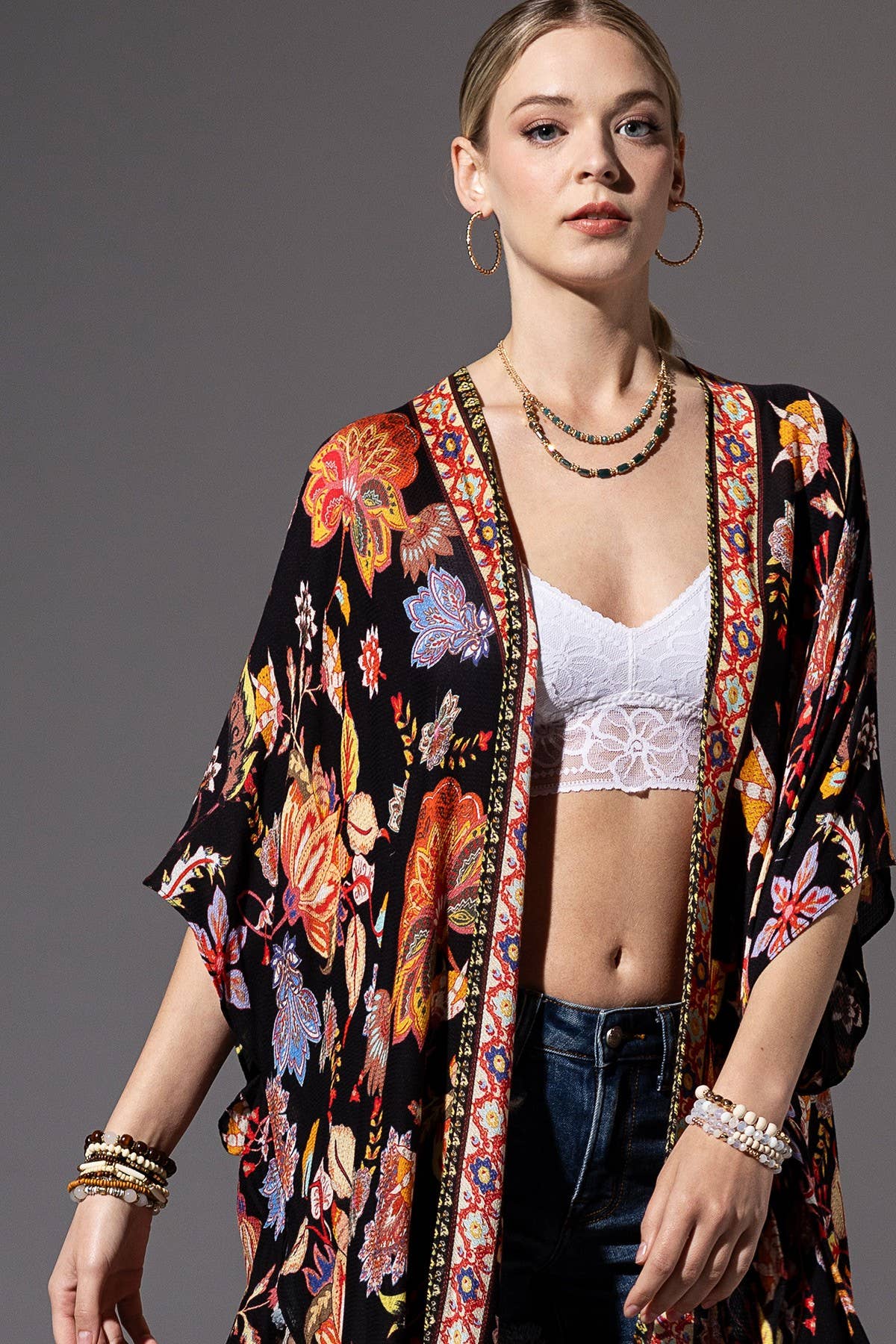 Introduce a touch of boho-chic elegance with our Crochet Floral Petal Kimono Wrap with Sleeves. Crafted from 100% Cotton, this kimono offers both comfort and durability. With dimensions designed to fit most sizes 0-8, the back length measures 26", bust across at 26", and sleeves at 21.5" with a 12" opening. This versatile piece can also be tied in the middle for a trendy crop-top look. The crochet floral petal design adds a layer of intricate detail, making it a perfect complement to any outfit. Available in packs of 3 and ready for immediate shipping, this kimono is a must-have for retailers seeking to offer unique, high-quality pieces. Immediate Shipping 100% Cotton Made in China Packs of 3 One Size Fits Most 0-8 Back Length: 26" Bust Across: 26" Sleeve Length: 21.5" Sleeve Opening: 12"