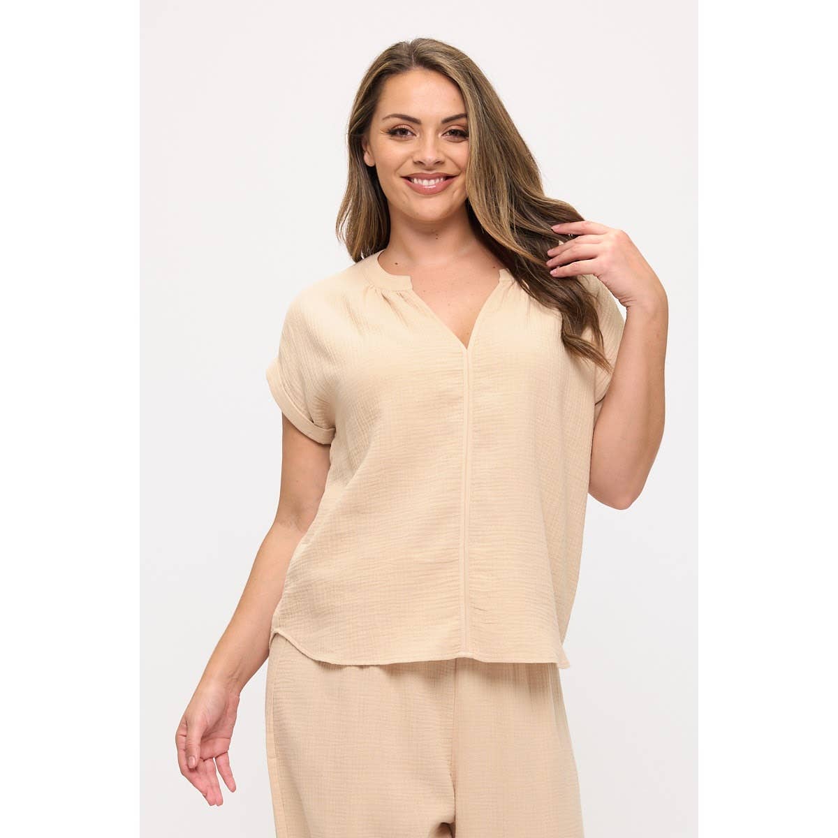 SKU: OB112897-F, OB112897-F, OB112897-F Made in China Care Instructions: Hand wash Fit: Contemporary Neckline: V-neck Occasion: Everyday and Work Season: Core Sleeve Length: Short Sleeve