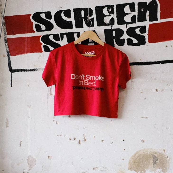 Every shirt we print is printed with love on 100 percent cotton or a 50/50 poly cotton blend. This particular tee is 50/50 Cotton/Poly.