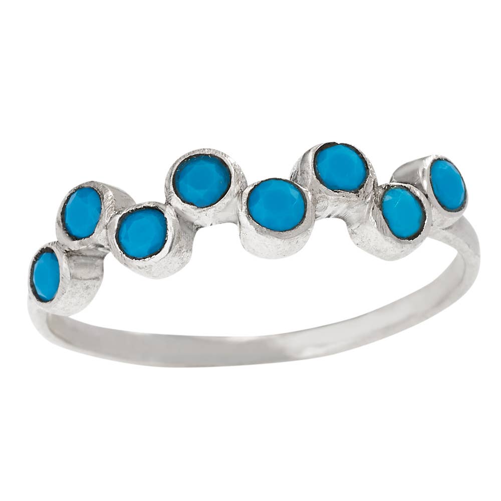 A unique asymmetrical open ring made from a combination of designs from the Luna & Bali collections. Available in custom sizing, if you would like your ring made larger/smaller than I offer or in a 1/4 size please let me know! A beaded double half round ring band adorned with six gemstones (settings: 19.4mm x 11.5mm & 14.5mm x 6.7mm). Available in genuine Turquoise, Black Onyx, Moonstone, Peach Moonstone & Pearl gemstones. All of our turquoise is mined & hand cut in Kingman, Arizona. Made from 100% sterling silver all Moxie Maine jewelry is hypoallergenic, durable, easy to clean & waterproof. A timeless piece that will hold up for many years. < each ring comes with a velvet box > SKU 411