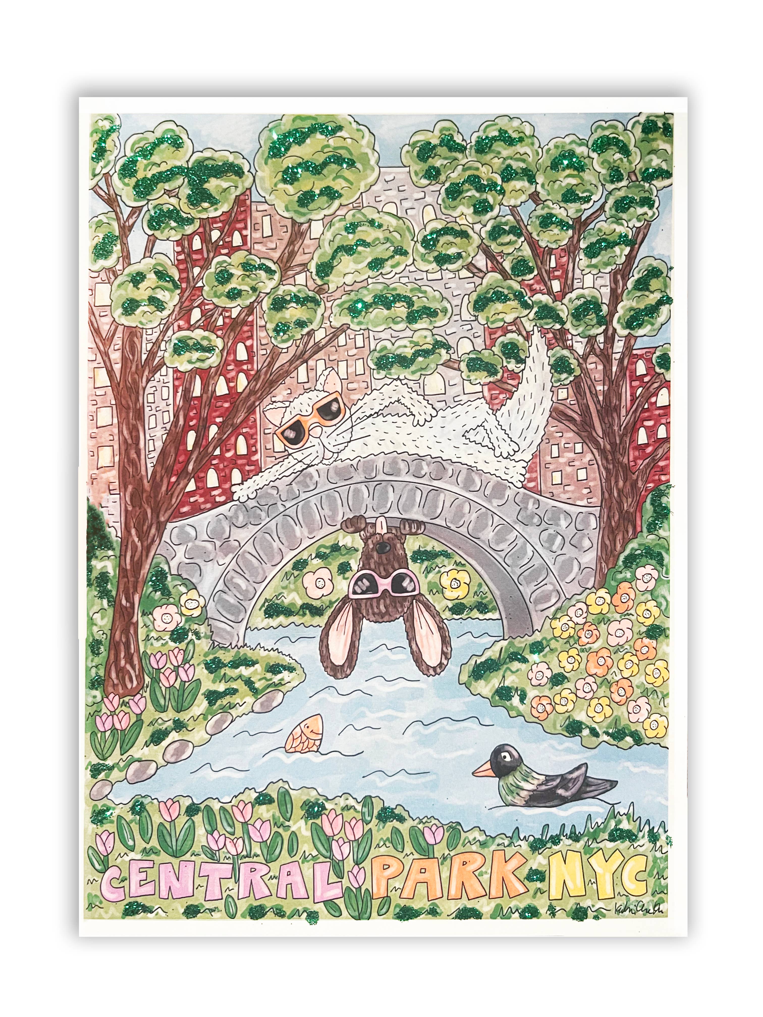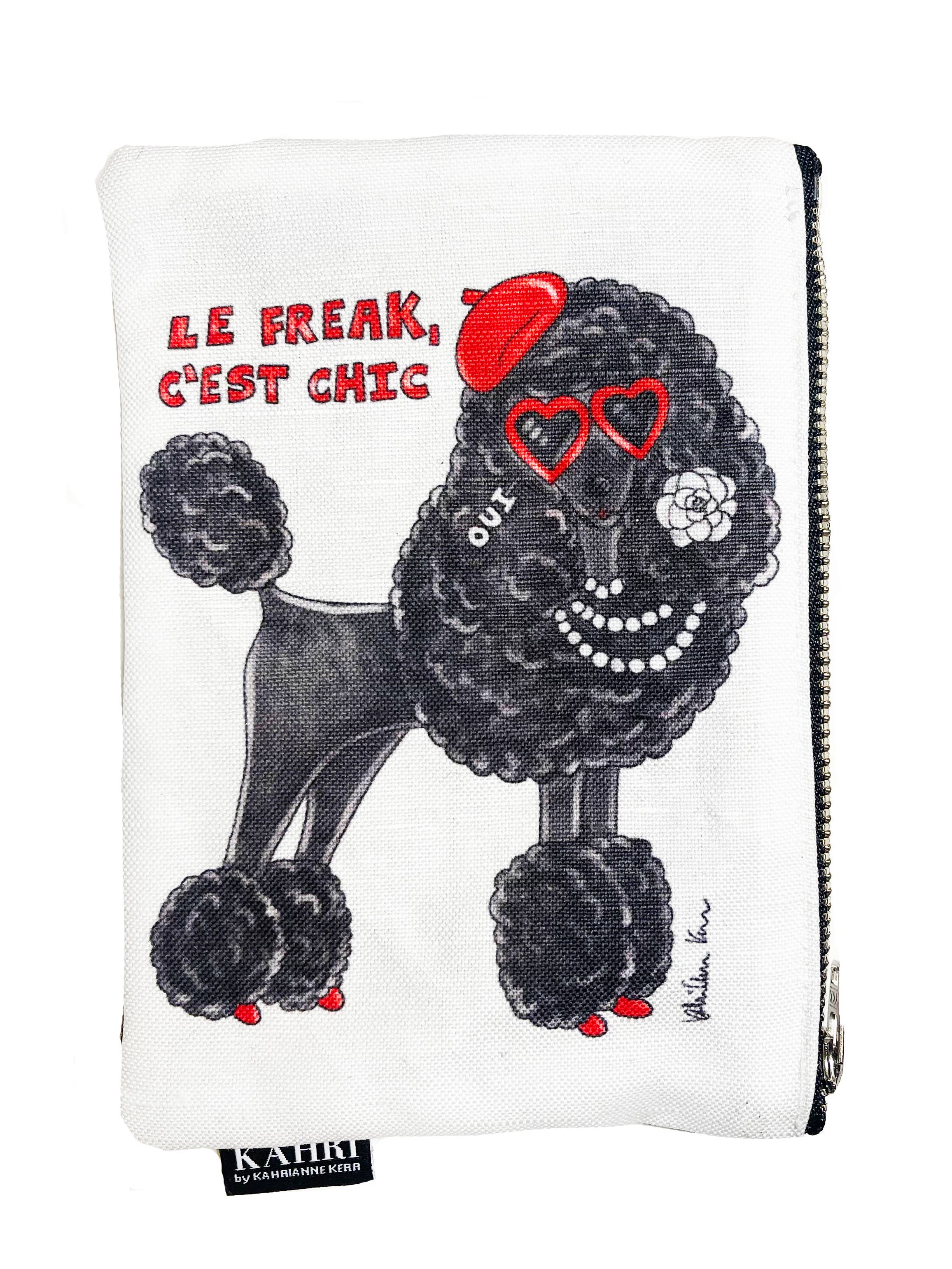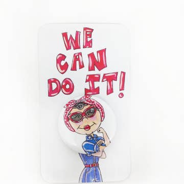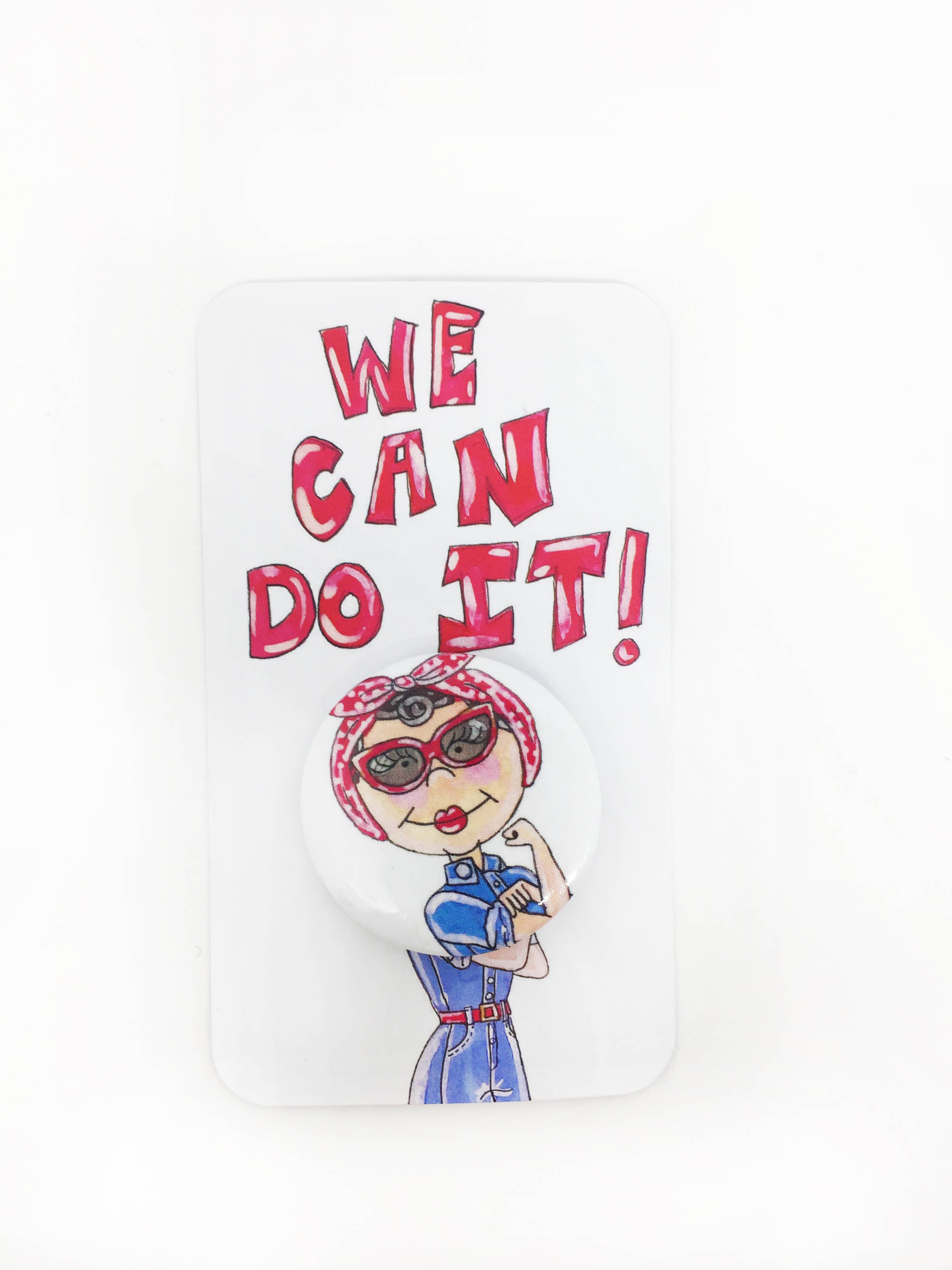 1.25"diameter circle pin featuring an original watercolor illustration of Karl Lagerfeld and Choupetter by KahriAnne Kerr. Comes on illustrated card with Karl quote.
