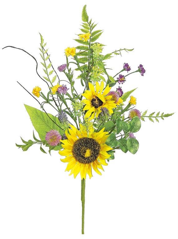This artificial sunflower arrangement features five beautiful blooms, adding a touch of warmth and cheer to any room. With realistic details and vibrant colors, this arrangement is a low-maintenance way to enjoy the beauty of sunflowers all year round. Perfect for home decor, weddings, or any special occasion, this arrangement will brighten up any space. * Height: 10 inches * Bloom diameter: 2.5 inches * Made of silk flowers and plastic stems * Flexible stems that can be bent to fit your desired arrangement * Each arrangement comes with a total of 5 flower heads and 3 leaves * Available in two colors: white and yellow