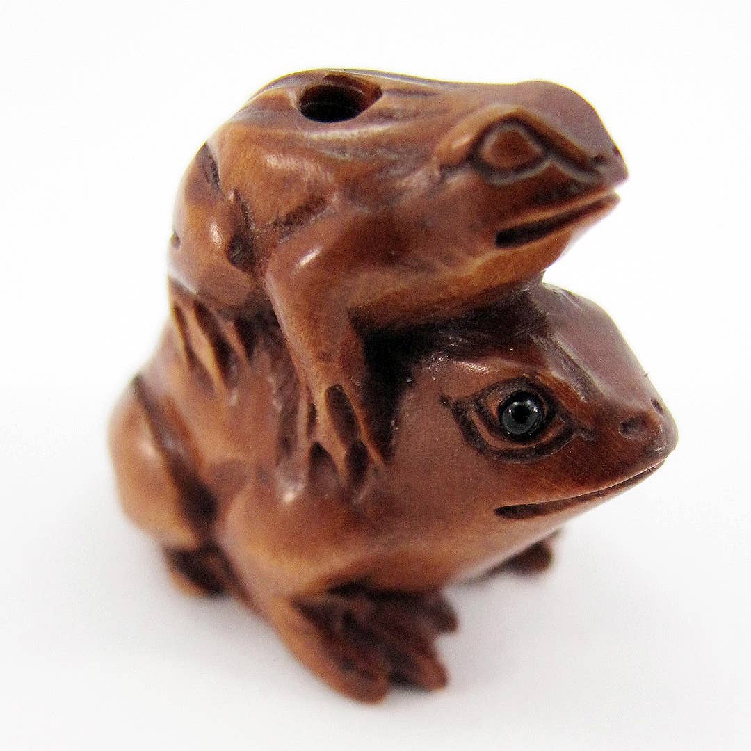 Smaller Bronze Cicada Bead, double sided with holes at the bottom. About 25 mm. Robert Burkett is a world-recognized jewelry maker and has been called the finest beadmaker in America. He works primarily in silver and shibuichi, a Japanese process where silver is mixed with copper to produce stunning arrays of color and form. The pieces below are crafted by hand using the lost-wax casting technique. Highly collectible, his pieces are versatile and affordable while being unique, one-of-a-kind pieces.