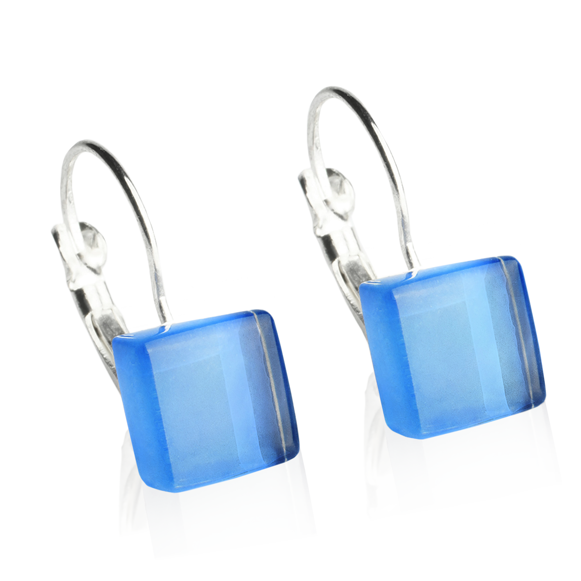 The minimalistic earrings with small square glass stones are lightweight and sturdy. They swing elegantly and barely noticeable on the earlobe. The secure closure of the earrings is easy to open and close, but does not open when worn. The square glass is transparent and covered with shiny paint from below - the earrings add a light and colorful accent to the ear. When manufacturing our jewelry, it is important to us to produce little waste and to work in a resource-saving manner. The PureForm line is made from recycled mosaic stones and scraps of leather. In this way, we breathe new life into materials and at the same time produce sustainable jewelry, as the materials used are robust and the minimalistic design is not trendy. Dimensions: Stone size - 10 mm x 10 mm x 3 mm earring length - approx. 20 mm MATERIAL: stone - recycled glass ear hooks - stainless steel (not nickel plated)