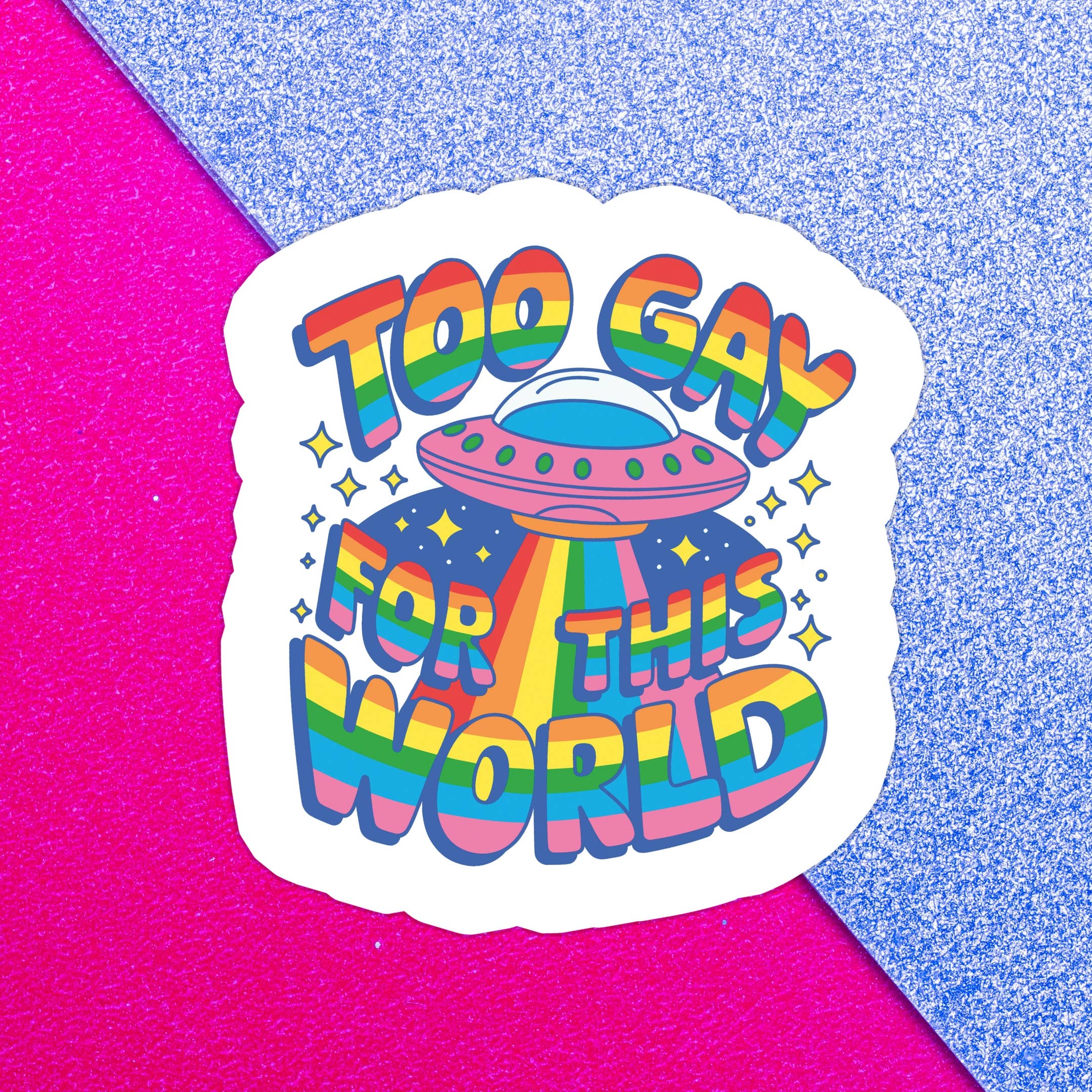 This queer UFO sticker features a retro-style flying saucer with a rainbow tractor beam and a distressed, vintage look! A perfect pride sticker. ✔ Glossy, professionally printed and die cut vinyl sticker ✔ 3" long at longest dimension ✔ Waterproof - suitable for laptops, water bottles, notebooks and more! Looks gorgeous on laptops, bumpers, bikes, and notebooks!